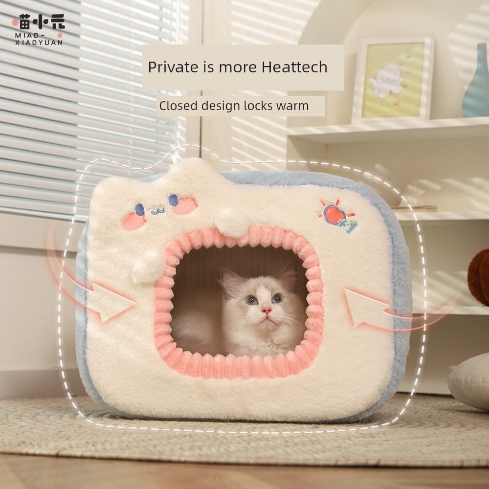 Кошачье гнездо Meow Xiaoyuan, осенний и зимний тепловой домик для кошек, зимняя лежанка для кошек, коврик для кошек на весь год, нейтральное закрытое кошачье гнездо