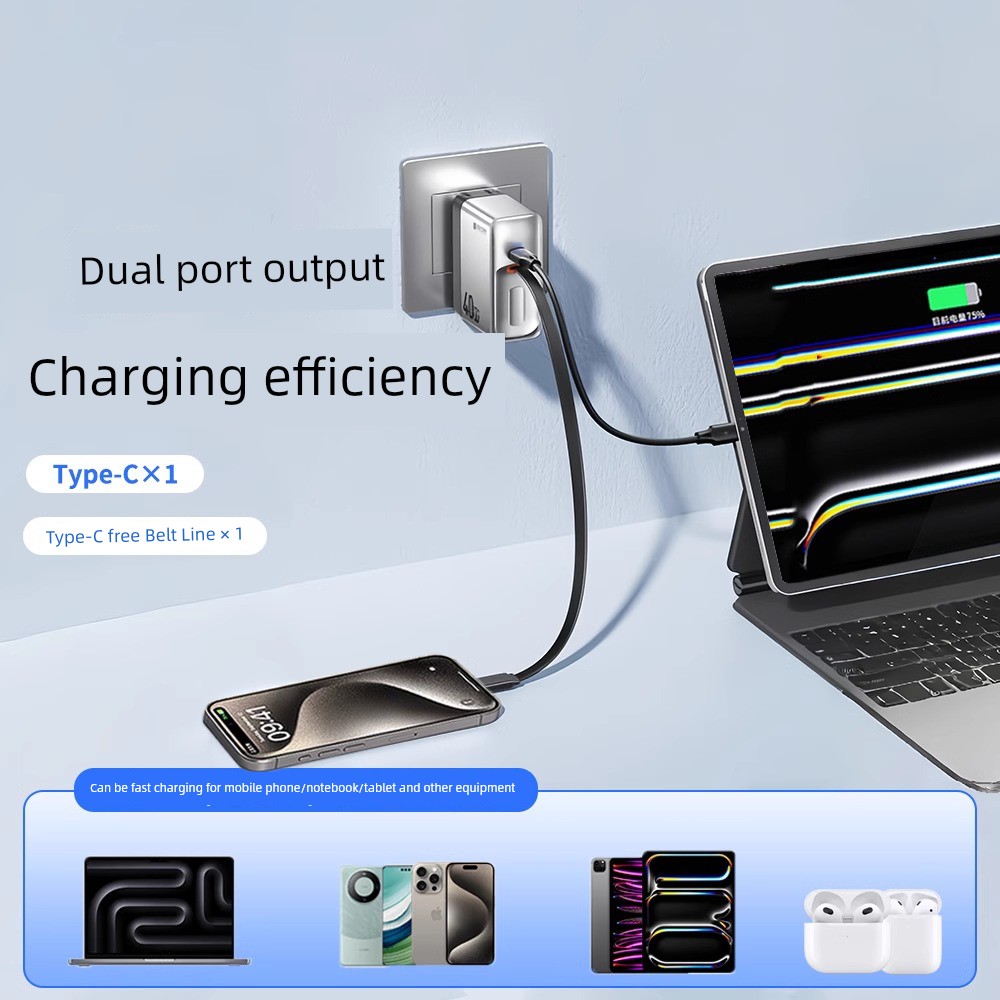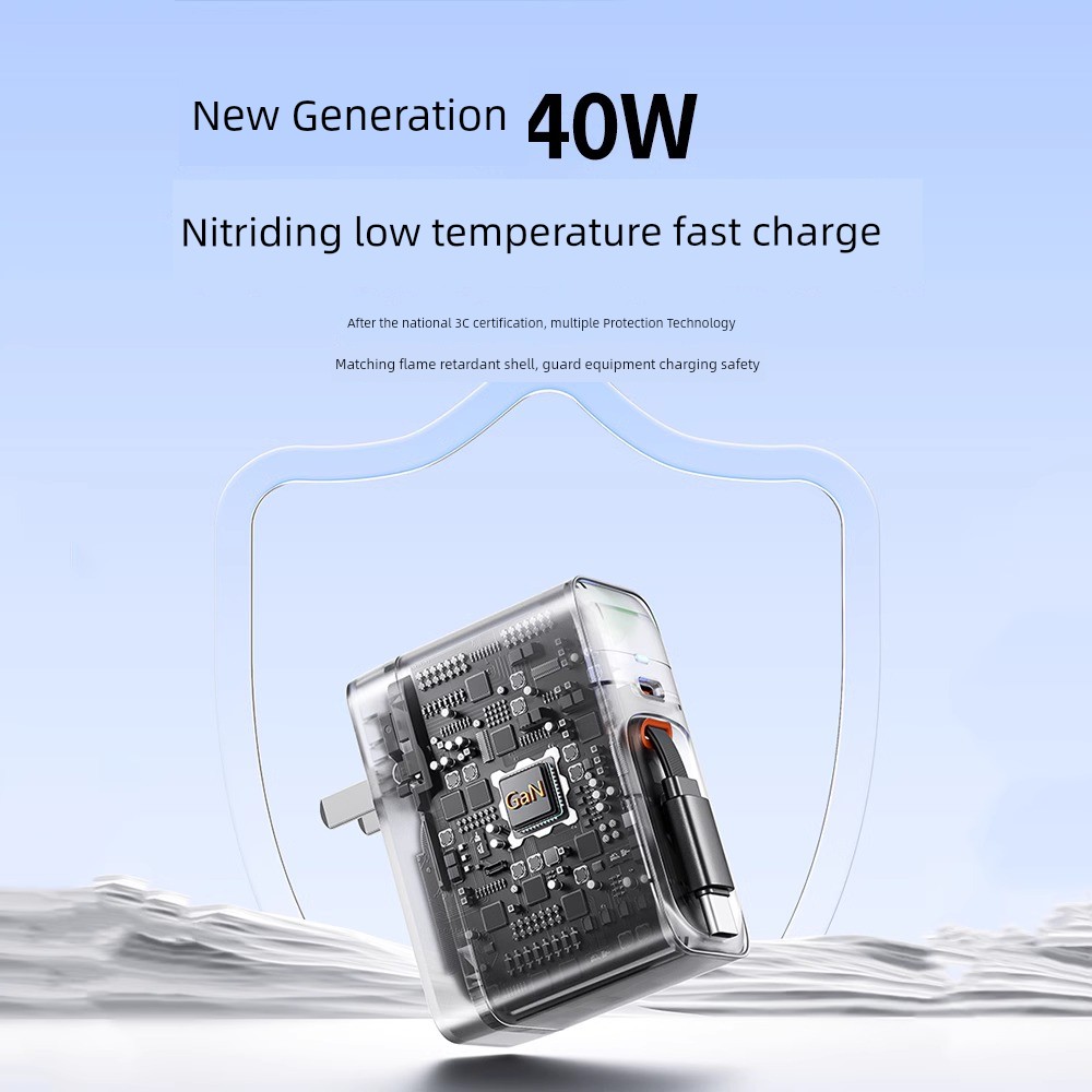 Зарядное устройство Miaoku 40W на нитриде галлия с выдвижным кабелем данных, вилка быстрой зарядки PD, подходит для Apple 16promax, зарядная вилка iPhone15/14, планшеты, ноутбуки, Typec