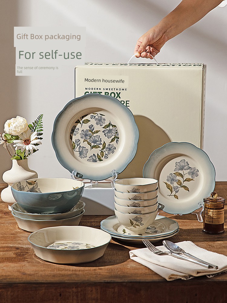 Набор тарелок Modern Housewife с синей подглазурной росписью, для дома, 2025, новый, красивый, посуда, подарок на новоселье