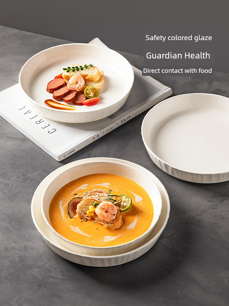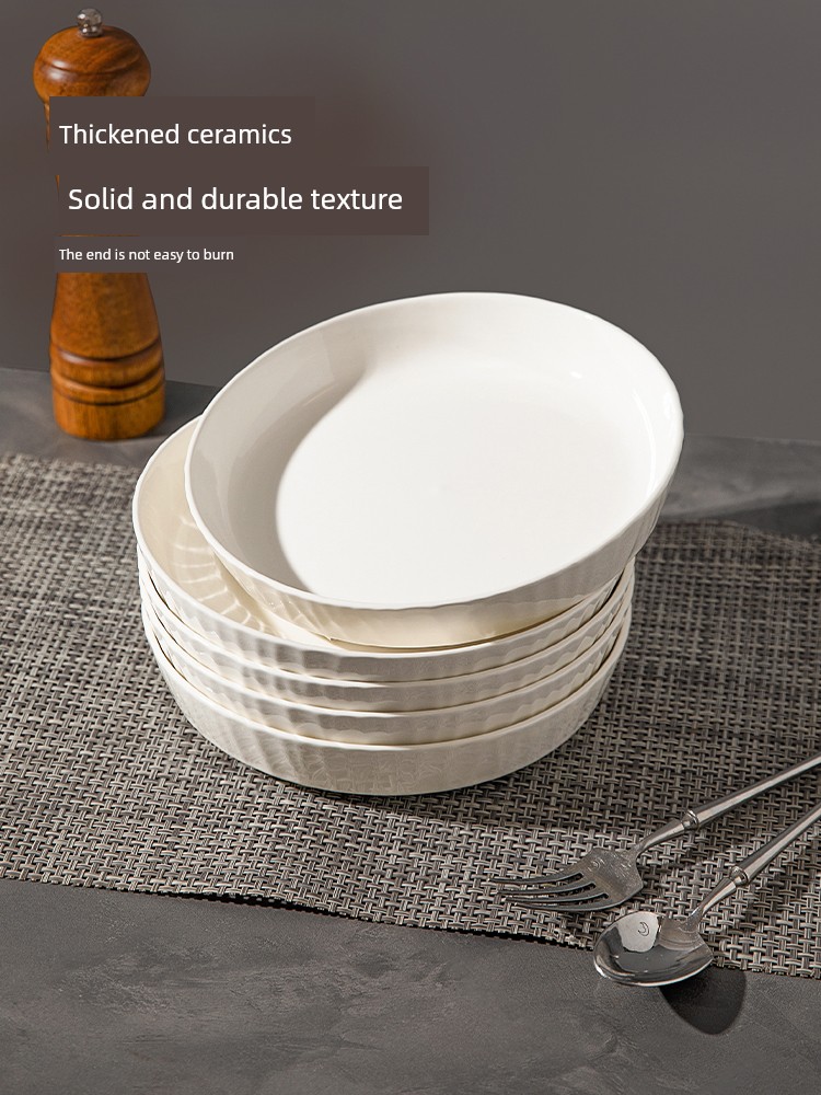Современная домохозяйка, белая тарелка, бытовая обеденная тарелка, новинка 2025 года, керамическая тарелка, глубокие тарелки, модная доступная роскошная миска-тарелка