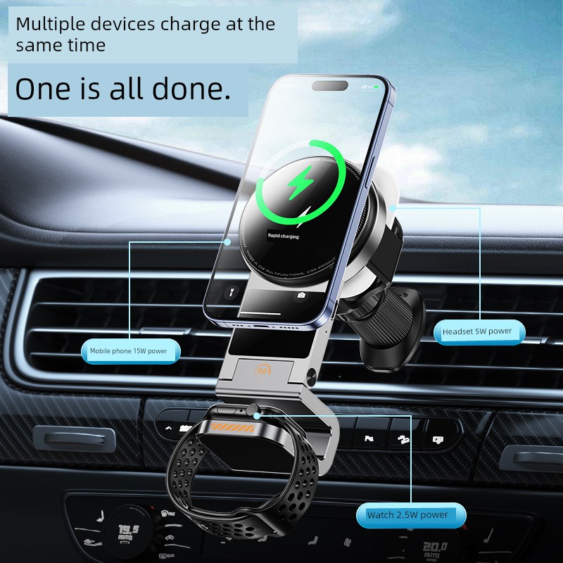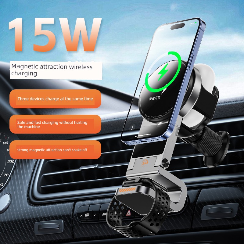 Новое автомобильное беспроводное магнитное зарядное устройство для мобильного телефона Apple Phone iPhone 15/14/13/12, зарядная станция для iwatch, многофункциональный автомобильный кронштейн для зарядки в вентиляционное отверстие, быстрая зарядка 15 Вт