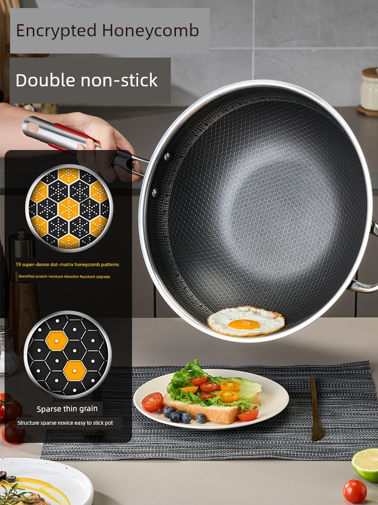 Антипригарная сковорода для дома, вок из нержавеющей стали 304 с сотами, антипригарная сковорода для жарки, специальное использование для газовой плиты и индукционной плиты