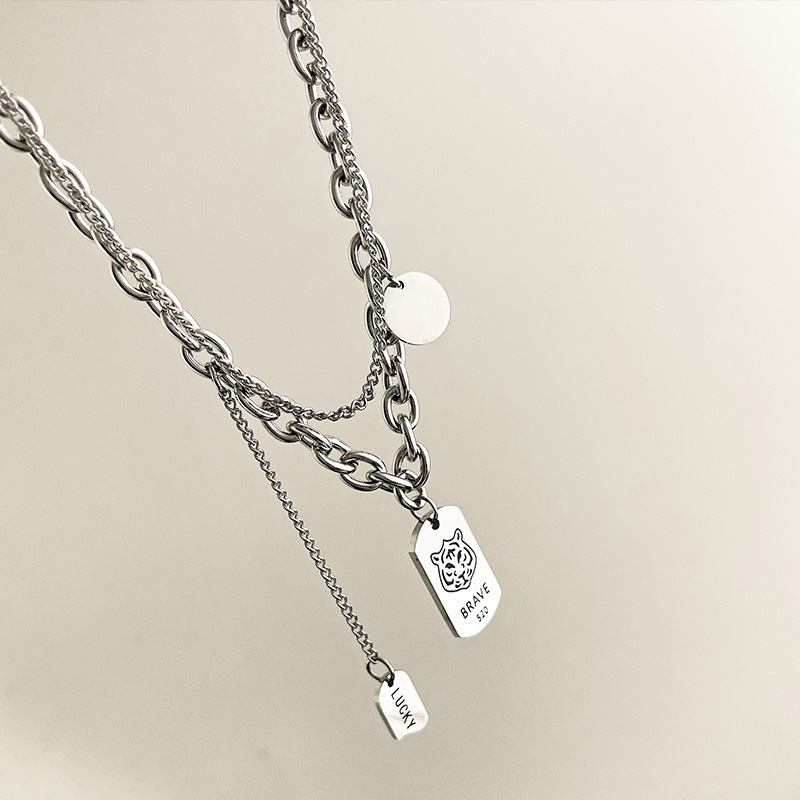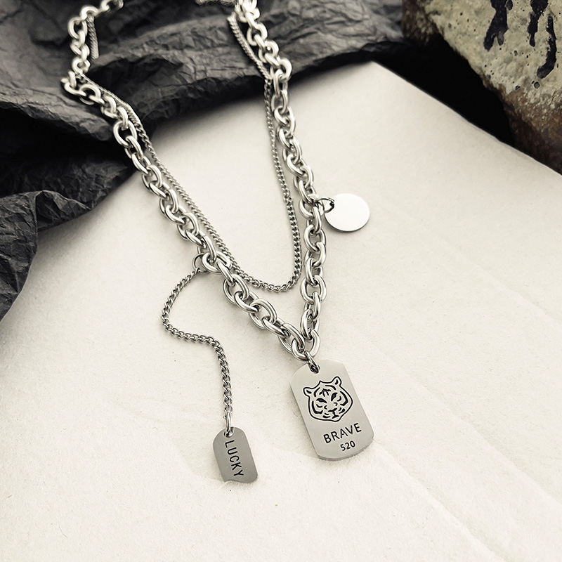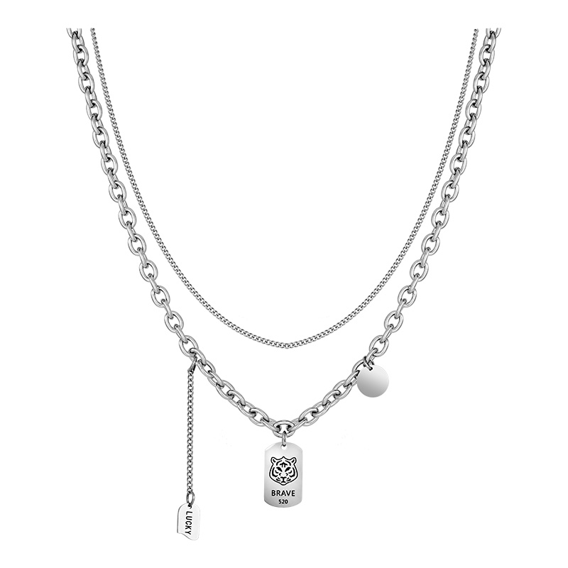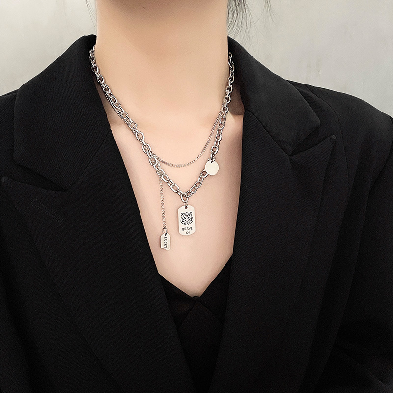 Olara Стильное хип-хоп ожерелье женская двухслойная цепочка на ключицу с подвеской-тигром из титановой стали, элегантное украшение-монета