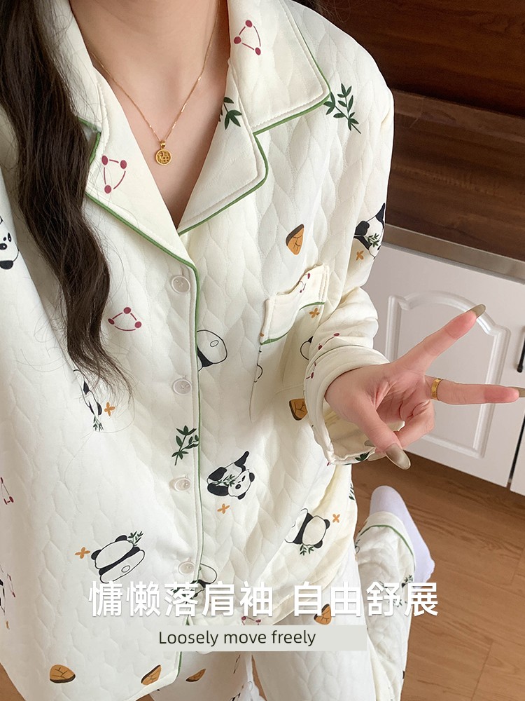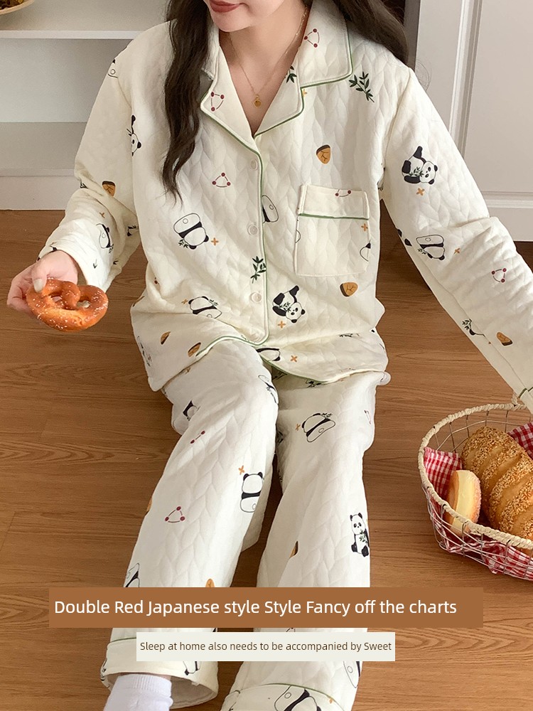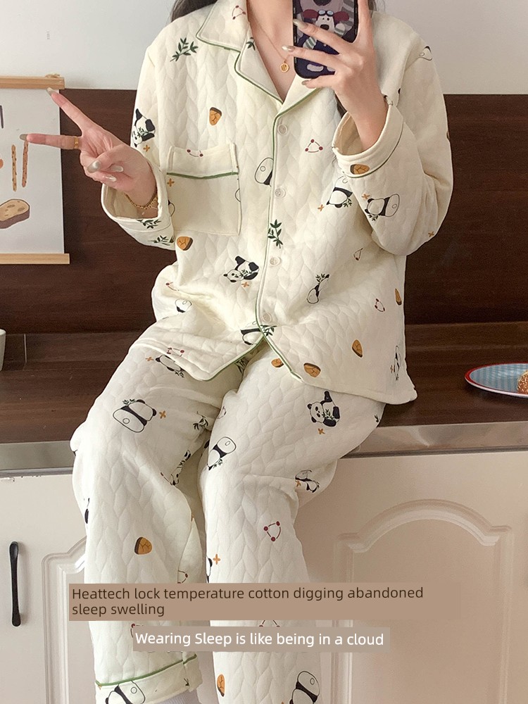 Новый утепленный комплект женской пижамы из кораллового флиса с подкладкой - милый девичий стиль, осень/зима 2024, большой размер, уютная домашняя одежда