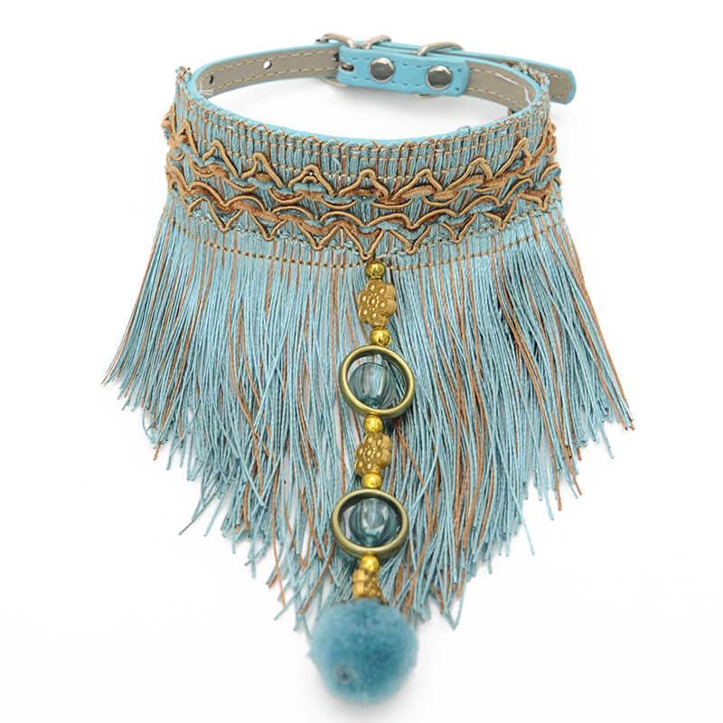 Ошейник для кошек и собак "Павлин", синий, с кисточкой, маленький размер, милый декоративный ошейник для котят, ожерелье, товары для животных