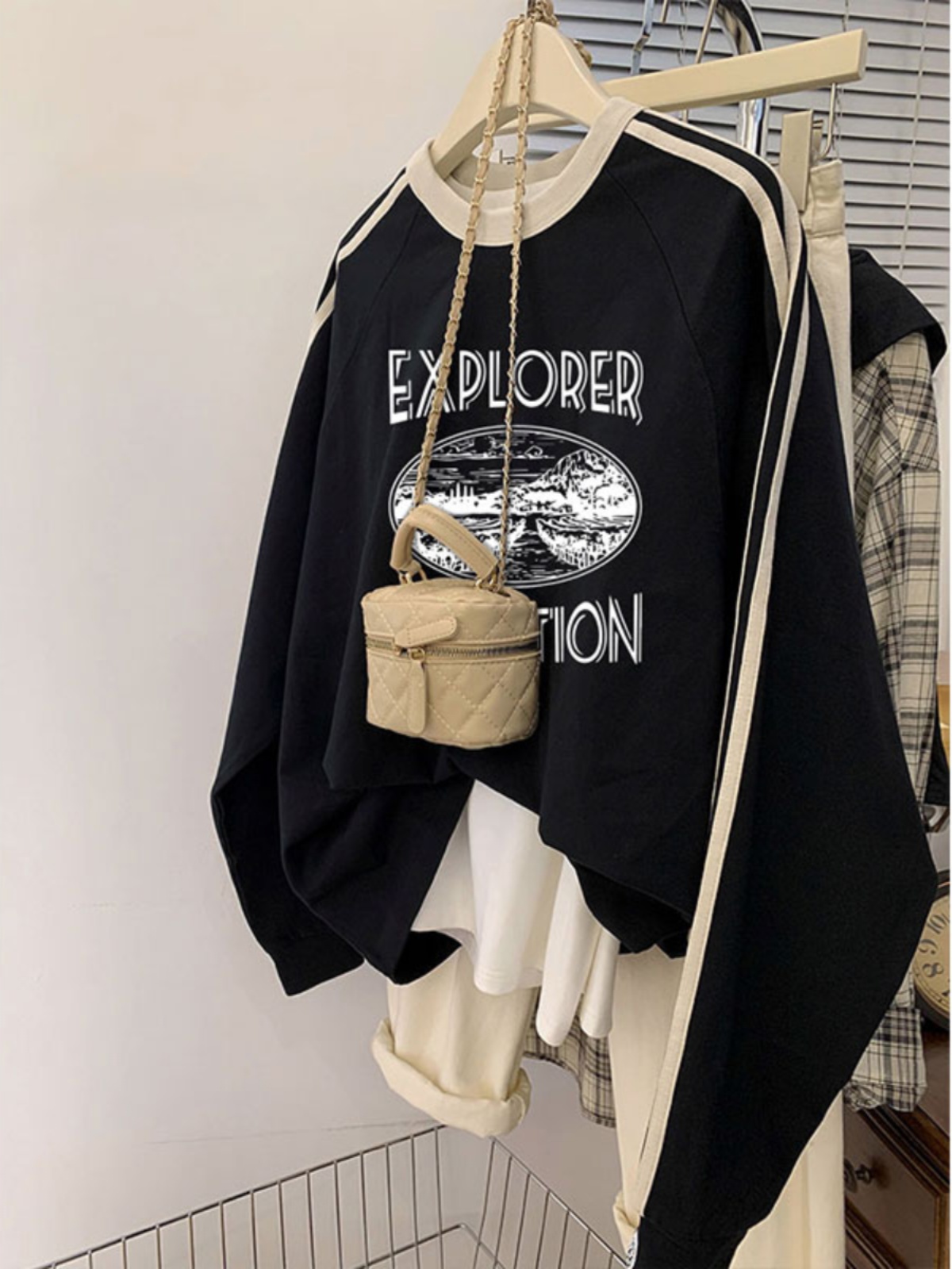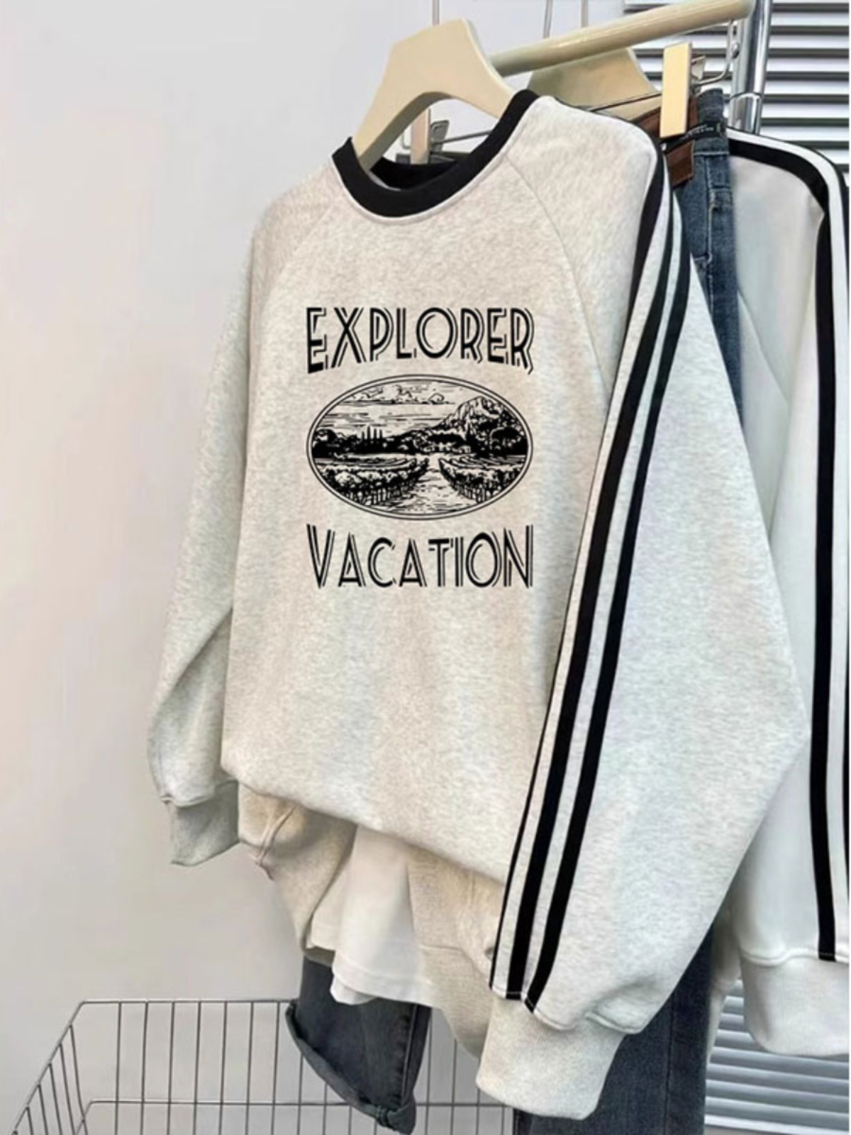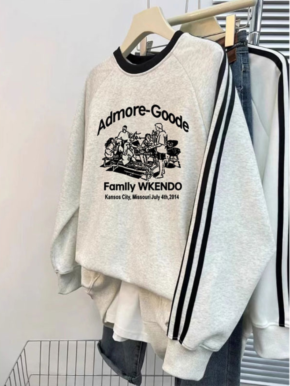 Плюшевая толстовка в американском ретро-стиле с тремя полосками, женская, осенне-зимняя, свободная, с круглым вырезом, на флисовой подкладке, стройнящая, приталенная верхняя одежда