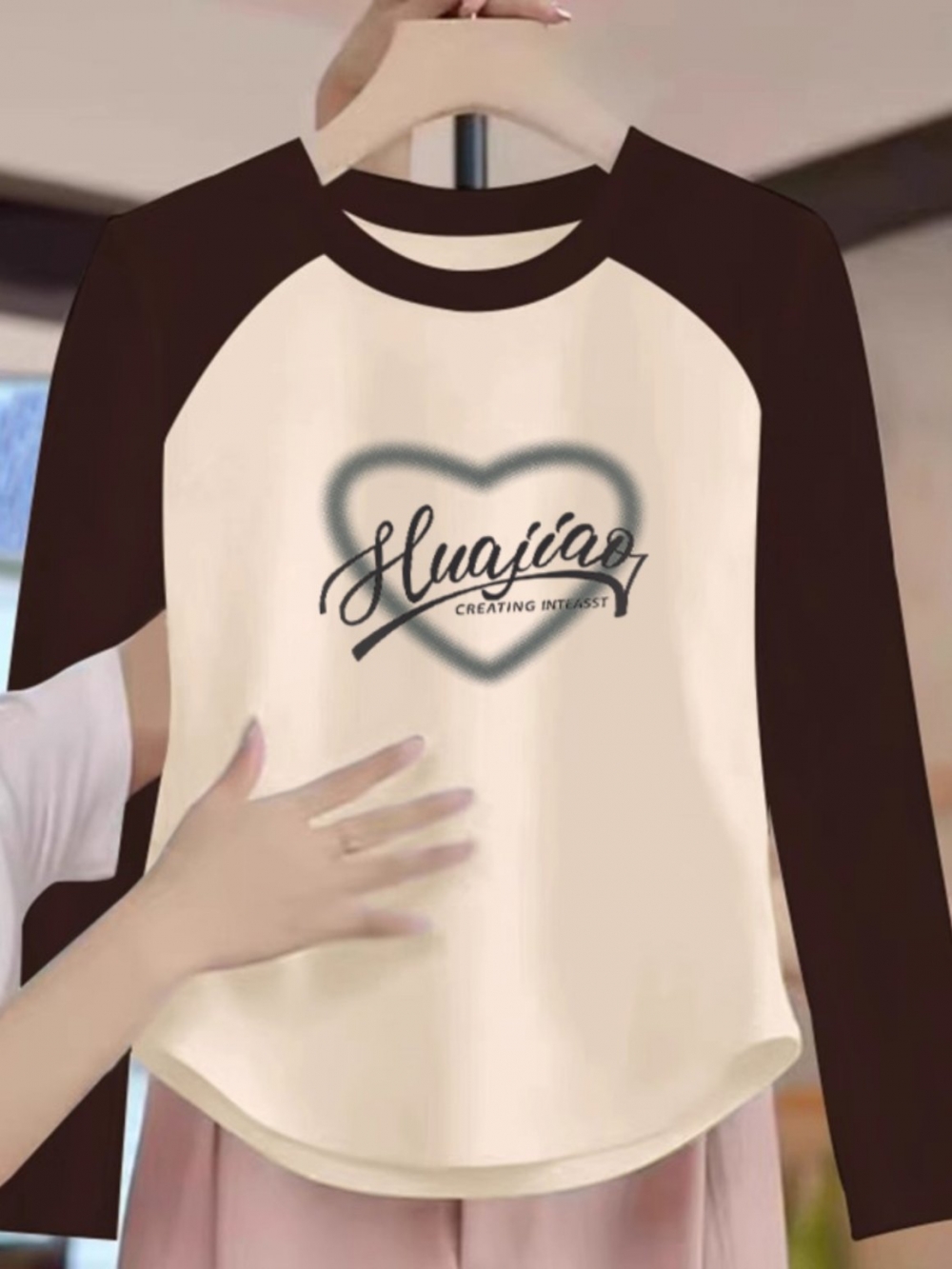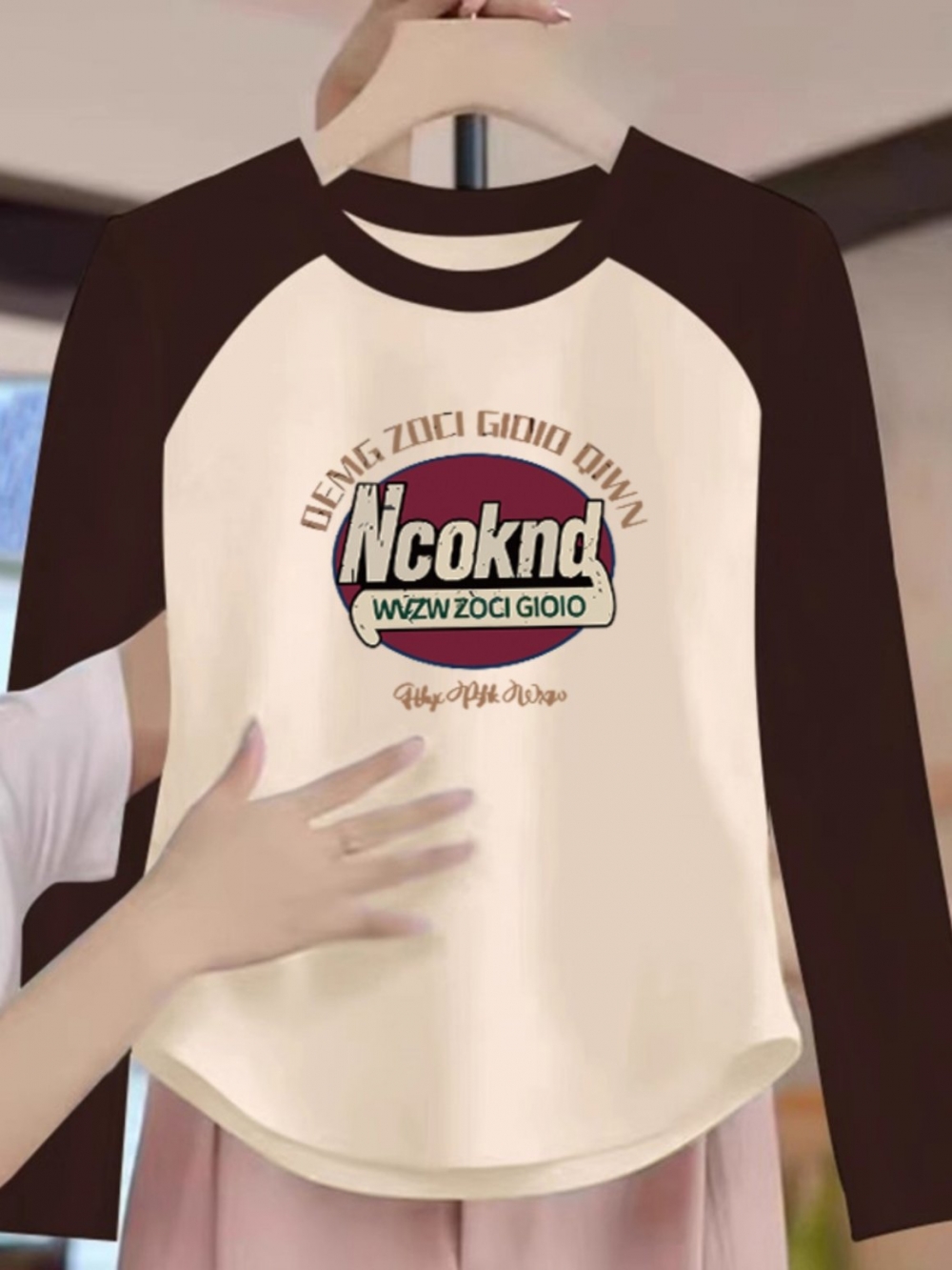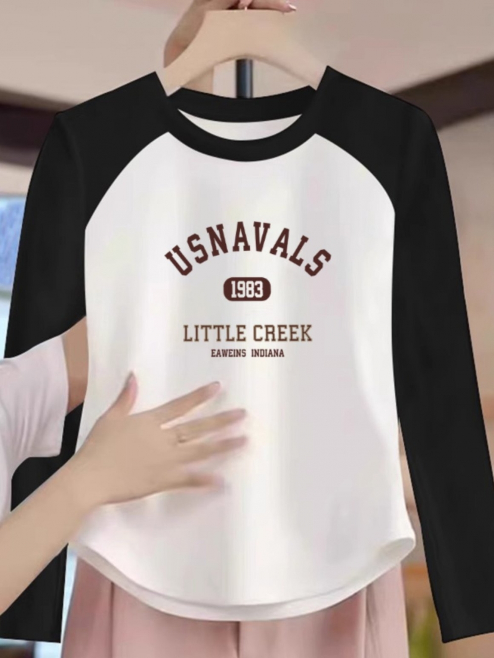 Женская футболка с длинными рукавами из чистого хлопка с асимметричным цветовым контрастом, базовый топ, верхняя и нижняя одежда для плеч, маленький приталенный короткий топ
