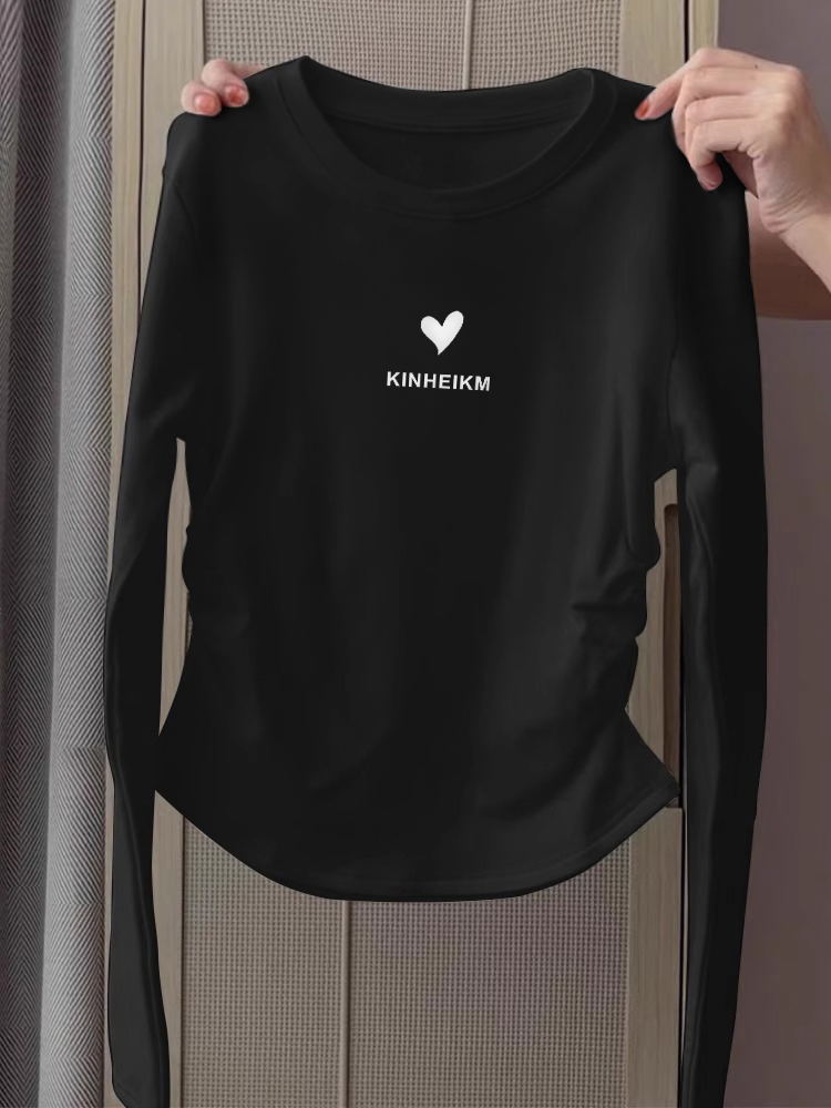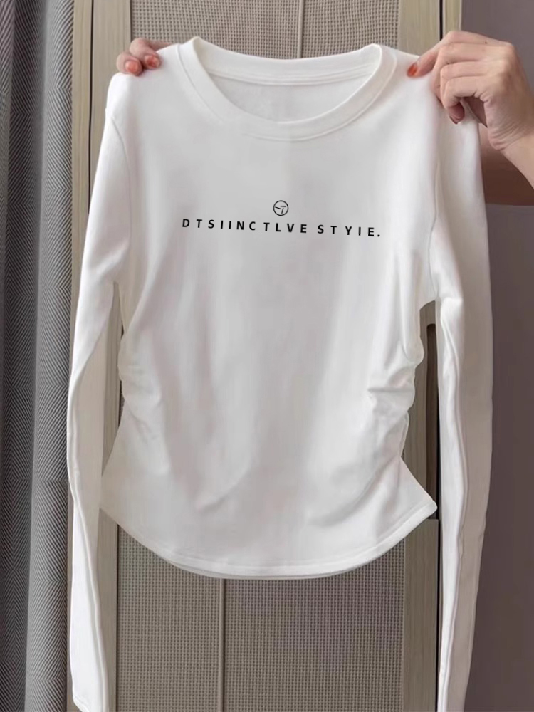 Футболка из чистого хлопка с коротким рукавом и асимметричным подолом, женская, новая поступь осени 2025, с плечевым приталенным силуэтом, зауженная, нижняя рубашка