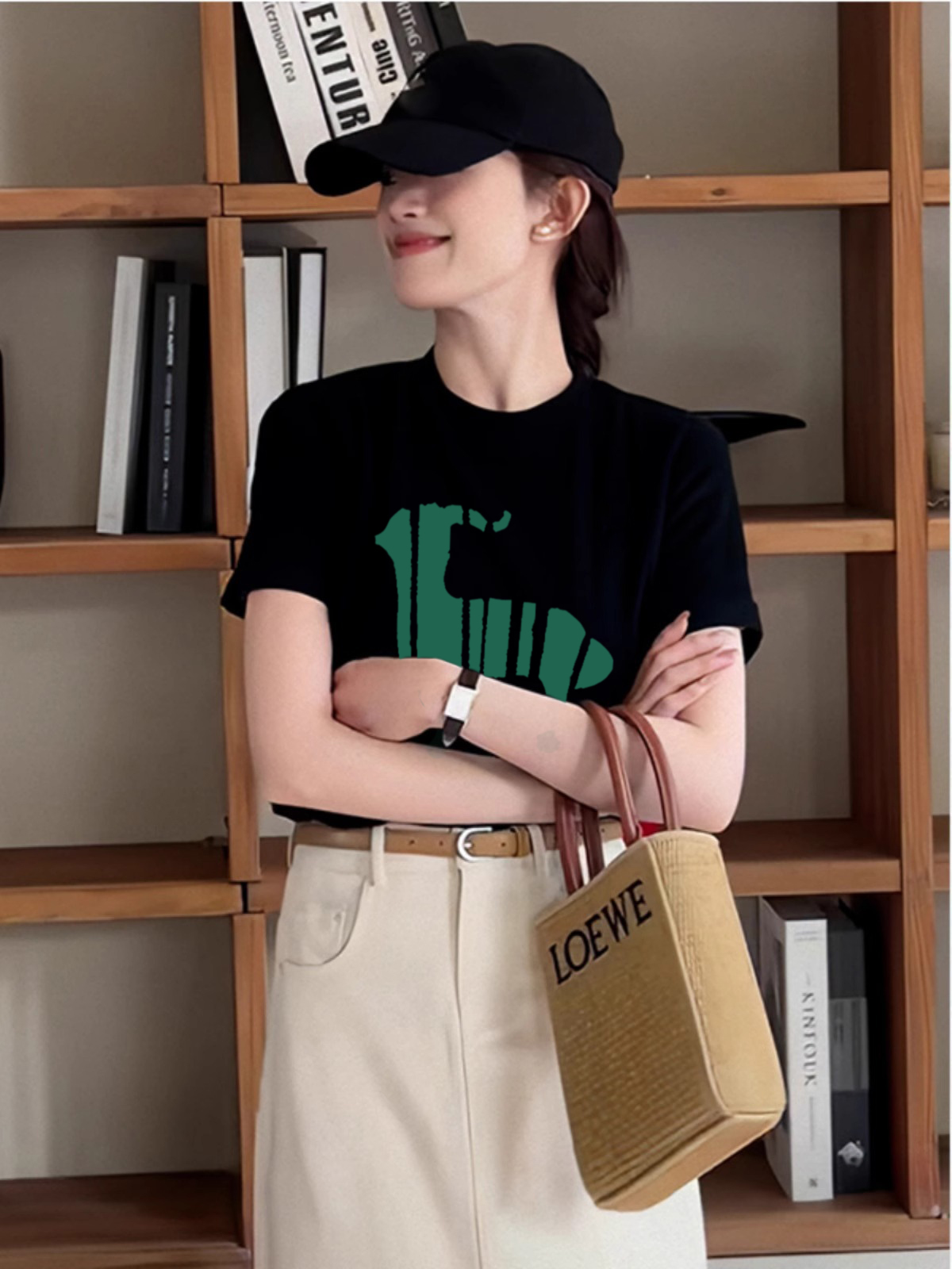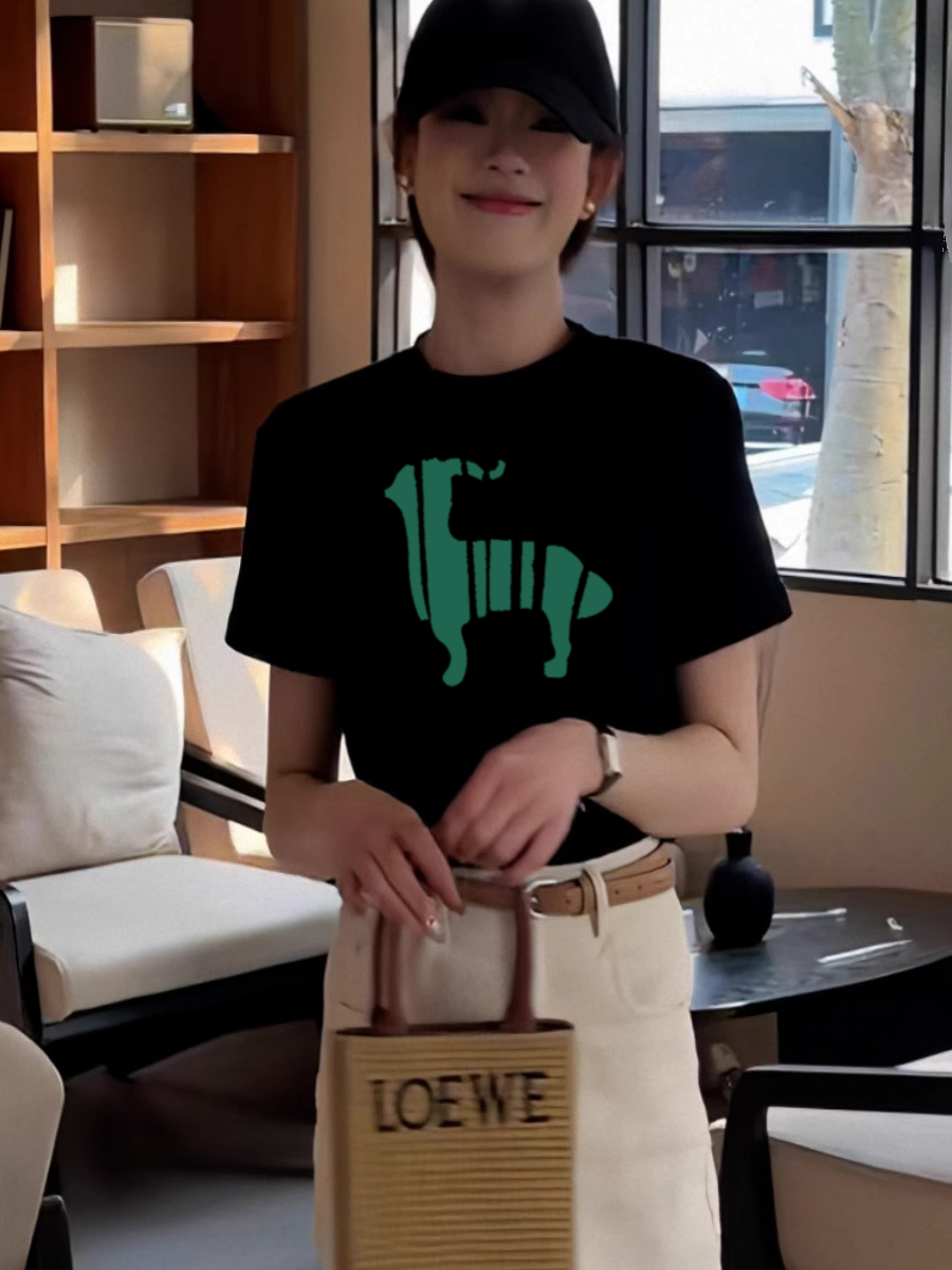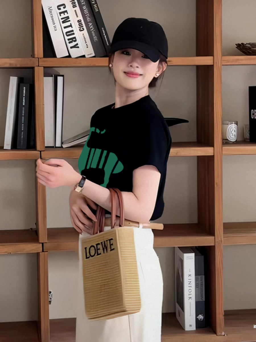 Черная хлопковая футболка с круглым вырезом и спущенным плечом, короткий рукав, женская, лето, свободная, стройнящая, с чувством дизайна, нишевый стиль, в стиле Гонконга, шикарные топы