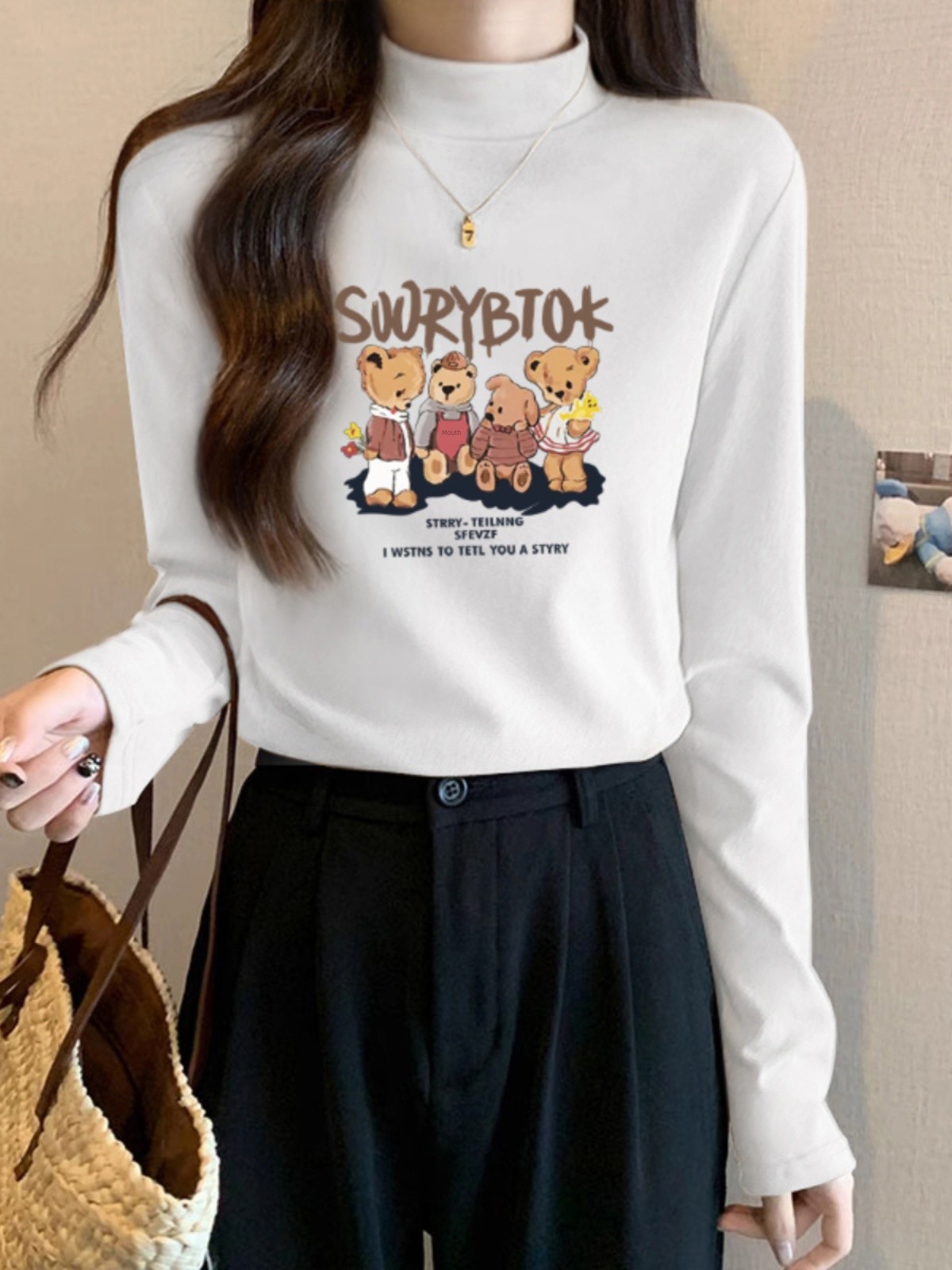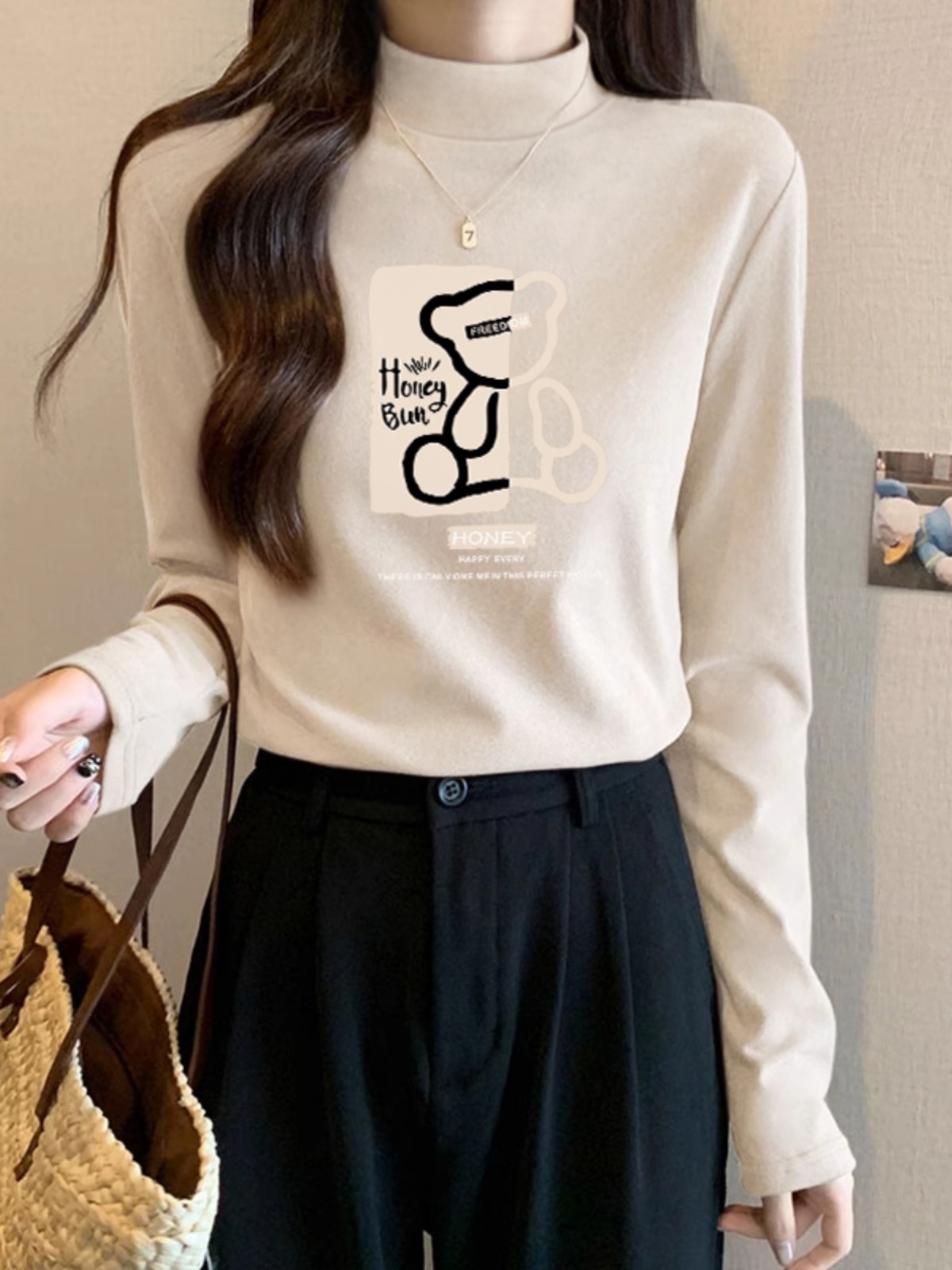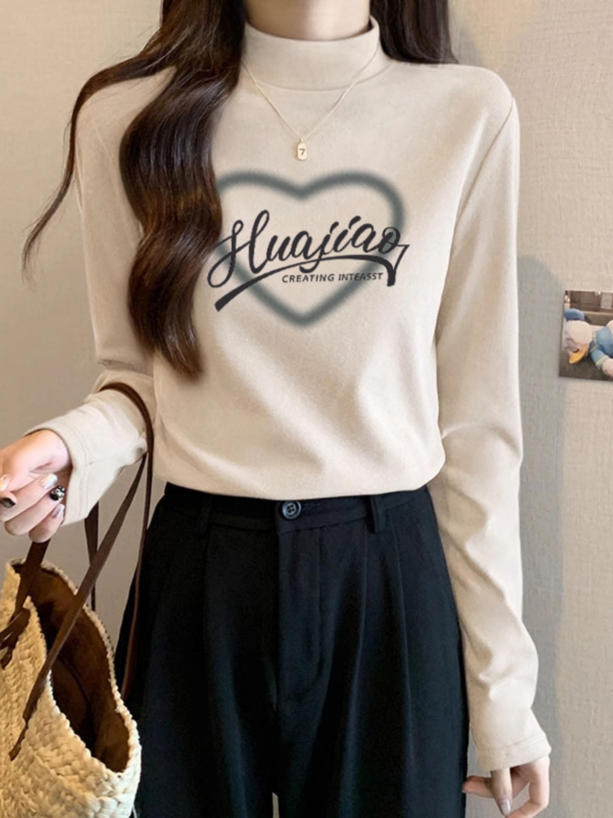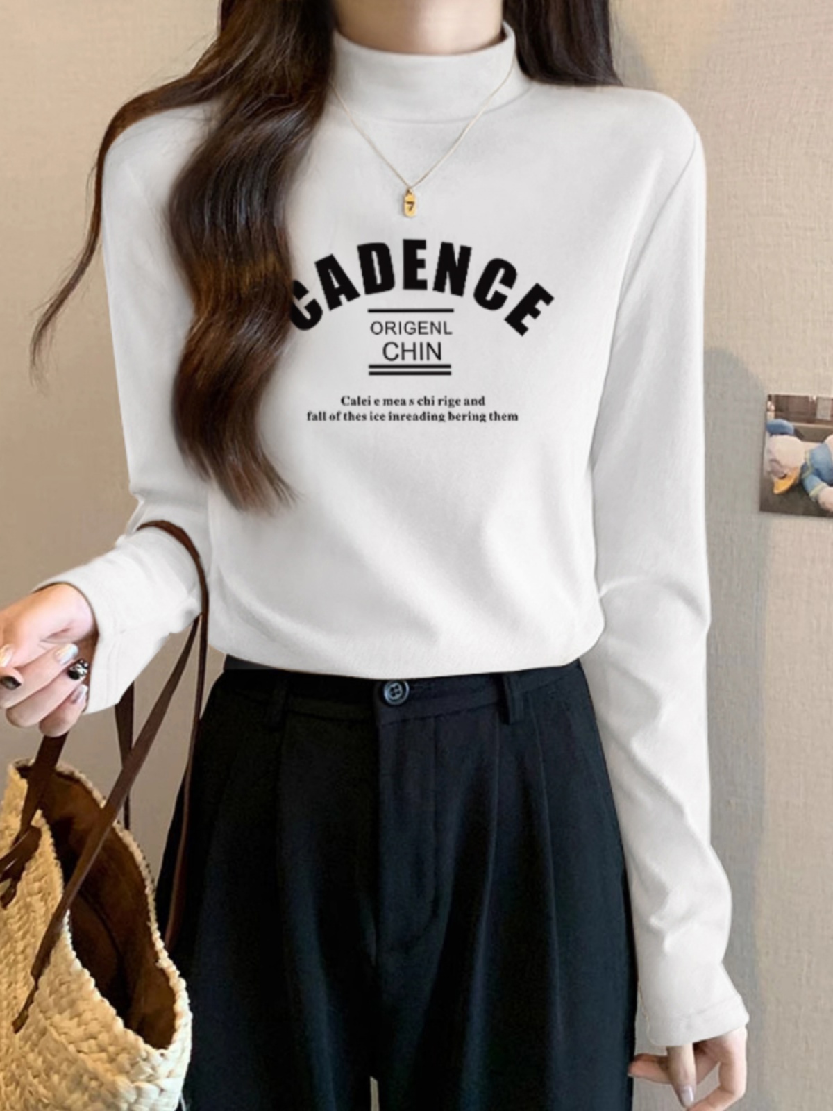 Футболка с водолазкой из чистого хлопка, с длинным рукавом, женская одежда, тонкий крой, нижняя одежда, новая поступление, осень-зима 2025, модный универсальный топ