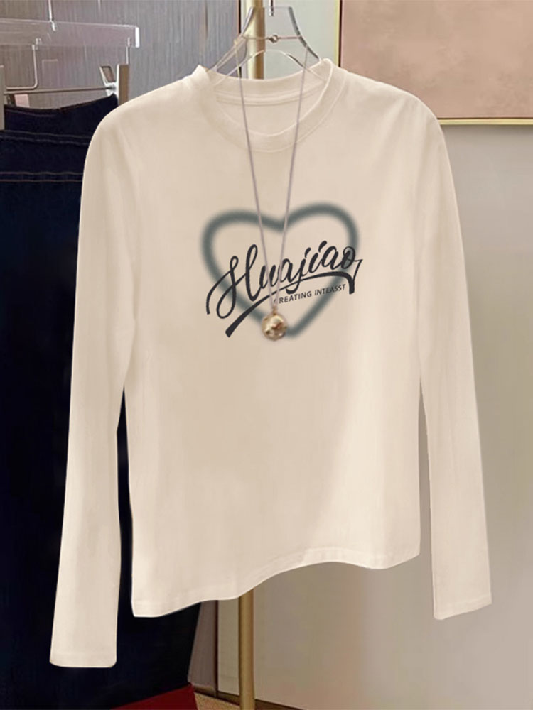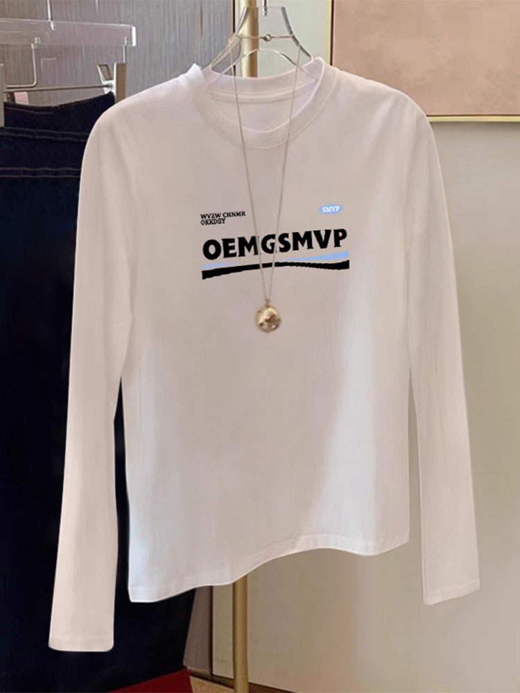 Футболка из чистого хлопка с длинным рукавом, женская, официальная, плечевая, белая, весна и осень, нишевый стиль, дизайн блузки, тонкая короткая зимняя нижняя рубашка