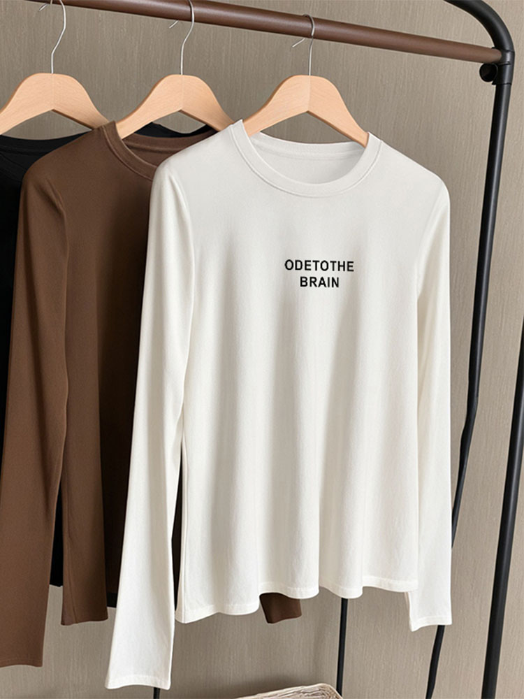 Футболка из Чистого Хлопка с Длинными Рукавами Женская Весенняя и Осенняя Одежда 2025 Новое Поступление K-стиль Свободная Нижняя Рубашка Верхняя Одежда в Западном Стиле