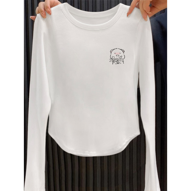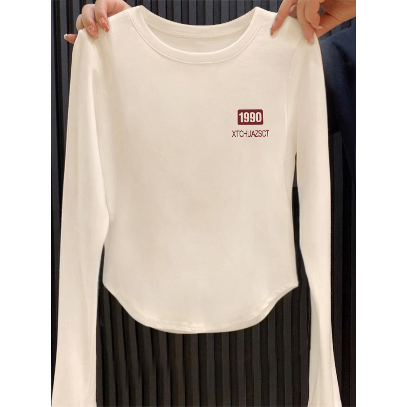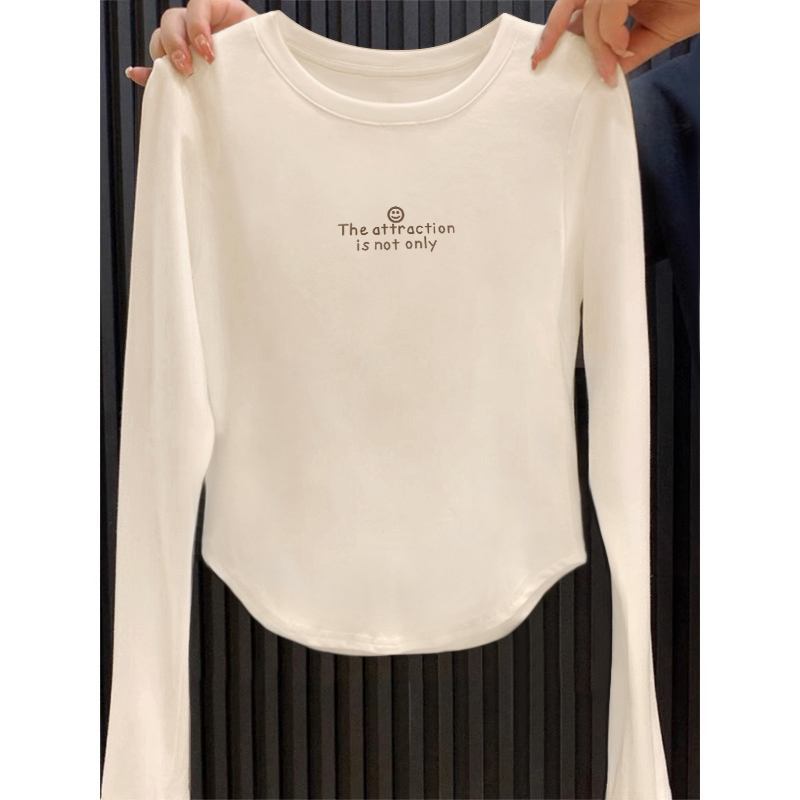 Чистый хлопок Свободная Короткая Футболка Нижний Слой Женская с длинным рукавом Внутренняя Одежда Модный Дизайнерский Топ Плечо Белая Футболка Весна и Осень Зима