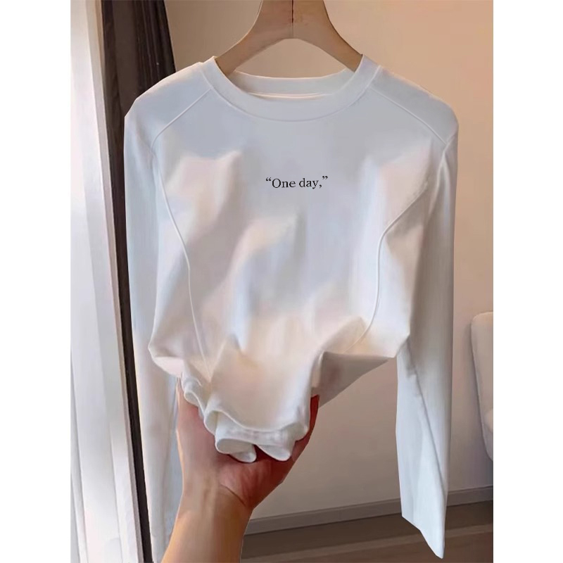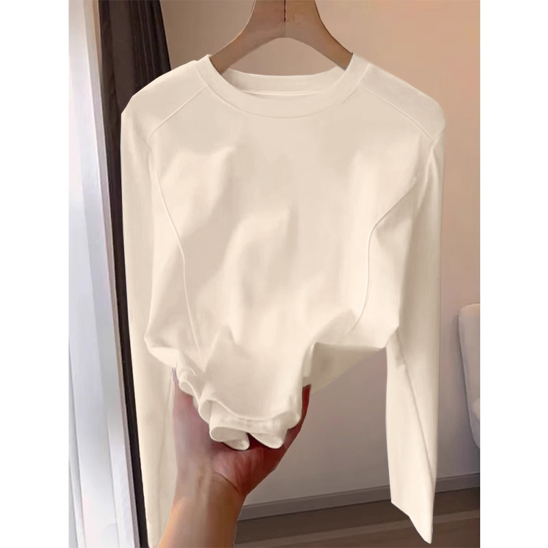 Футболка-водолазка из чистого хлопка с асимметричным плечом, женская, для ношения под костюм, модная, зауженная, с круглым вырезом, с длинными рукавами, женская футболка, модная