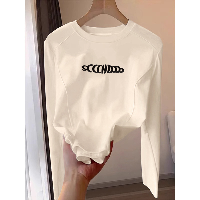 Хлопковая футболка с открытыми плечами и длинными рукавами для женщин, весна и осень, стильный белый топ с мелкой рыбьей костью, нижняя рубашка