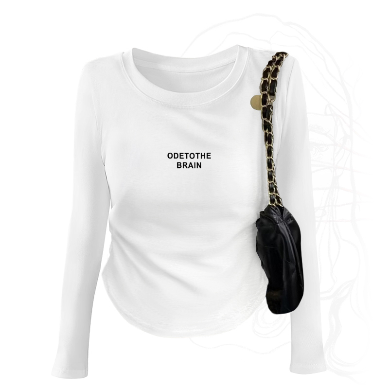 Хлопковая футболка с длинным рукавом и коррекцией талии, женская, поступление весны и осени 2025, круглый вырез, белый, приталенный силуэт, внутренний слой, короткие плечи