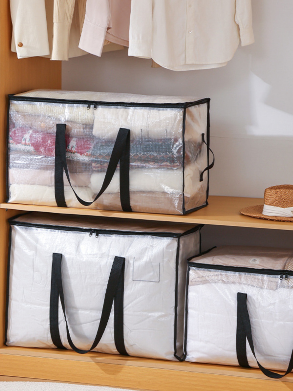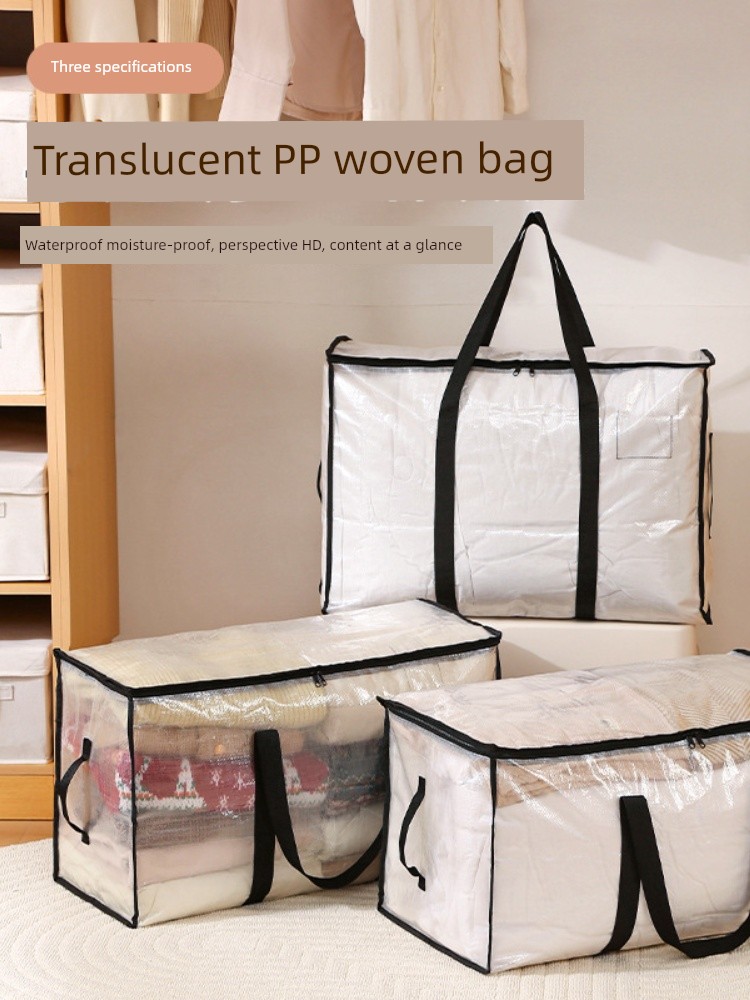 Упаковочная сумка для одеял, складная, прозрачная, большая емкость, тканая сумка, водонепроницаемая, маслостойкая, с двойной молнией, сумка для хранения одежды