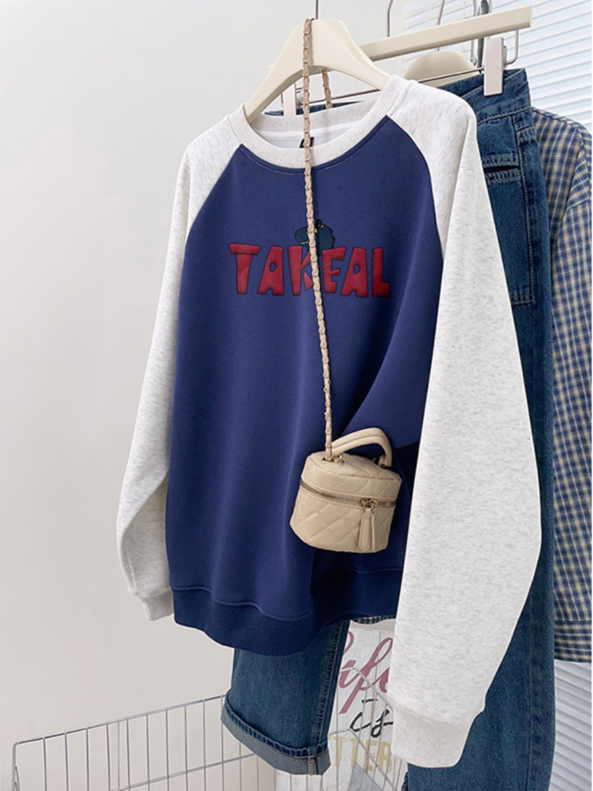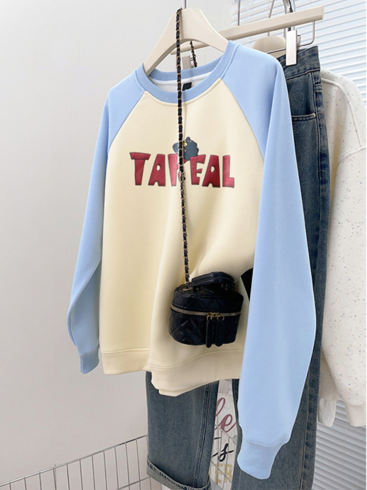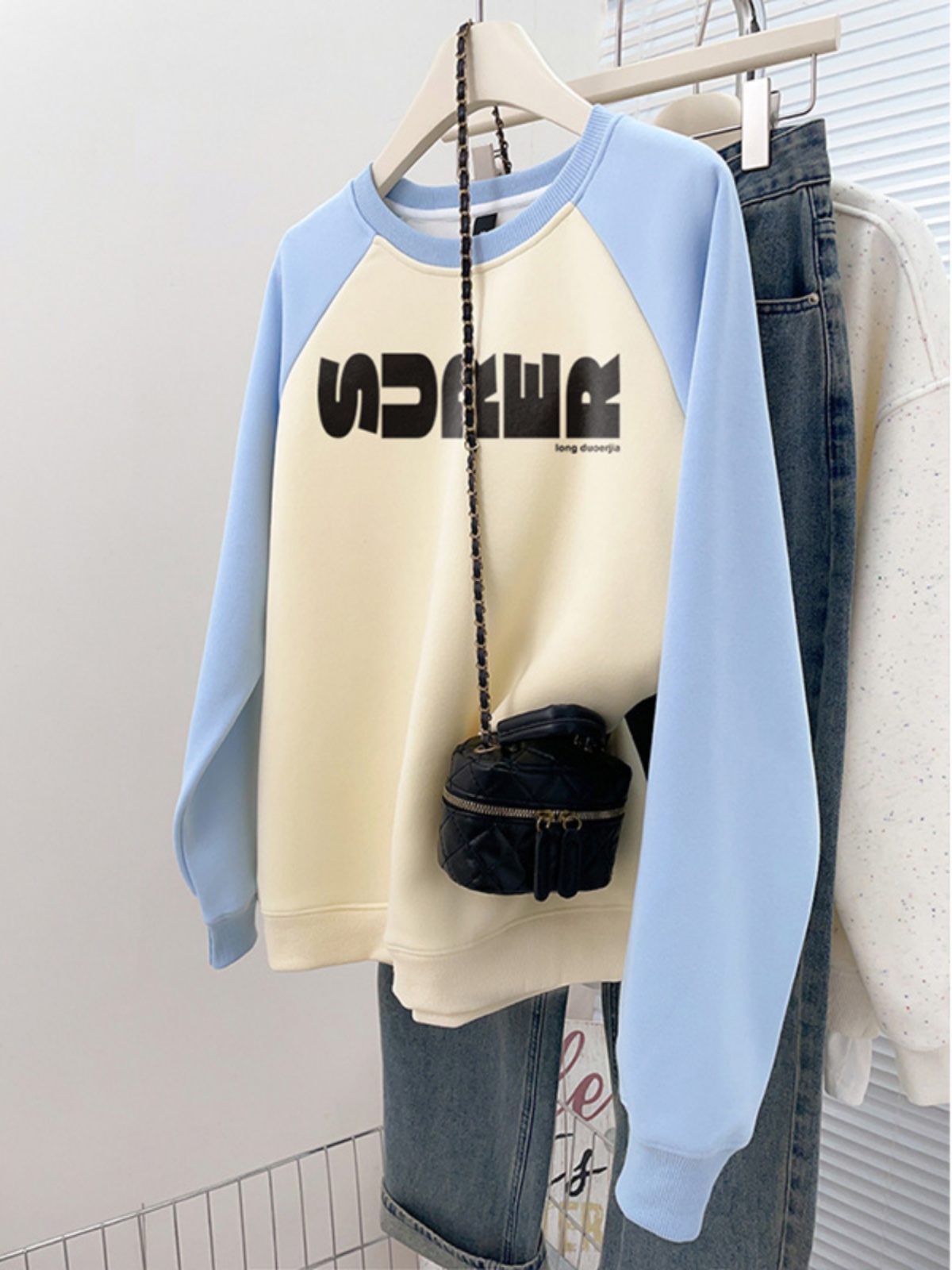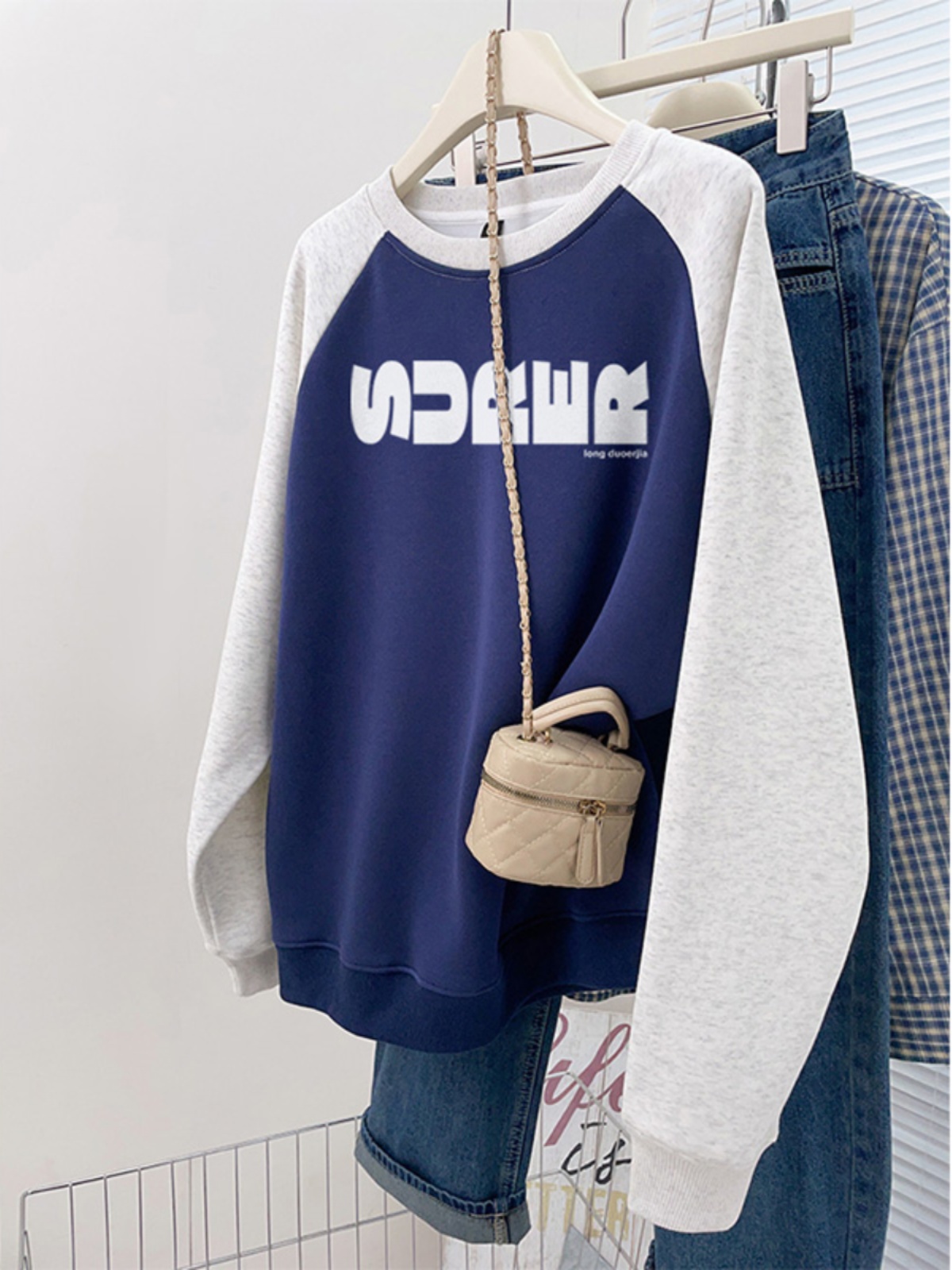 Толстовка с круглым воротом и рукавами реглан большого размера Женская Новинка Осень-Зима 2025 г. С флисовой подкладкой, утолщенный свободный дизайн, нишевый стиль, модная верхняя одежда