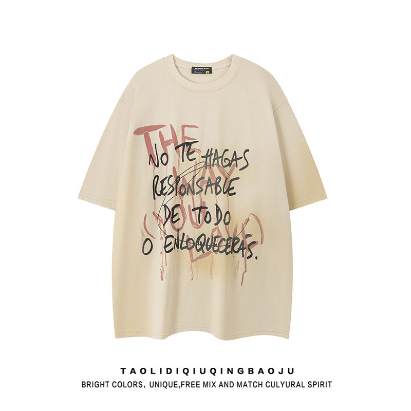 Ретро футболка с коротким рукавом, свободная, абрикосового цвета, новинка