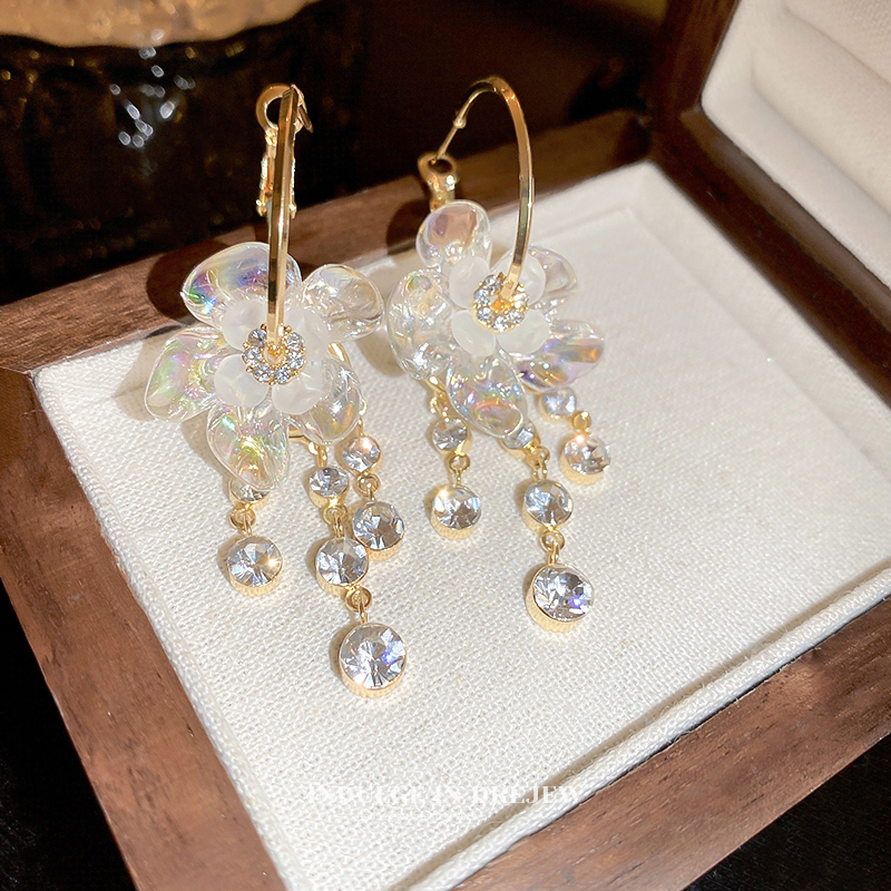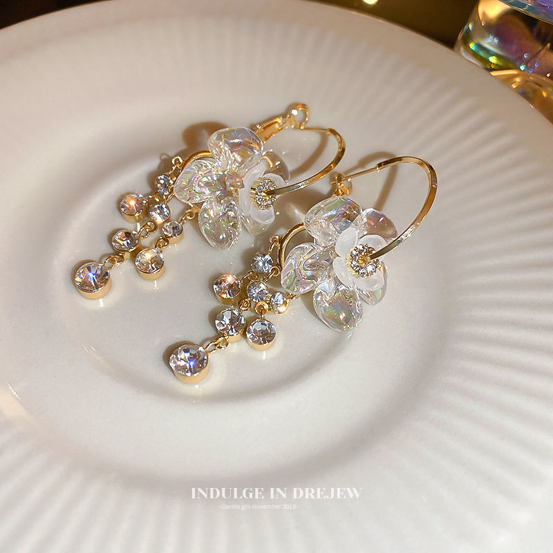 Серьги с цветами и подвесками из страз, нишевый дизайн, темпераментные серьги, новинка 2025 года, элегантные, модные, для женщин