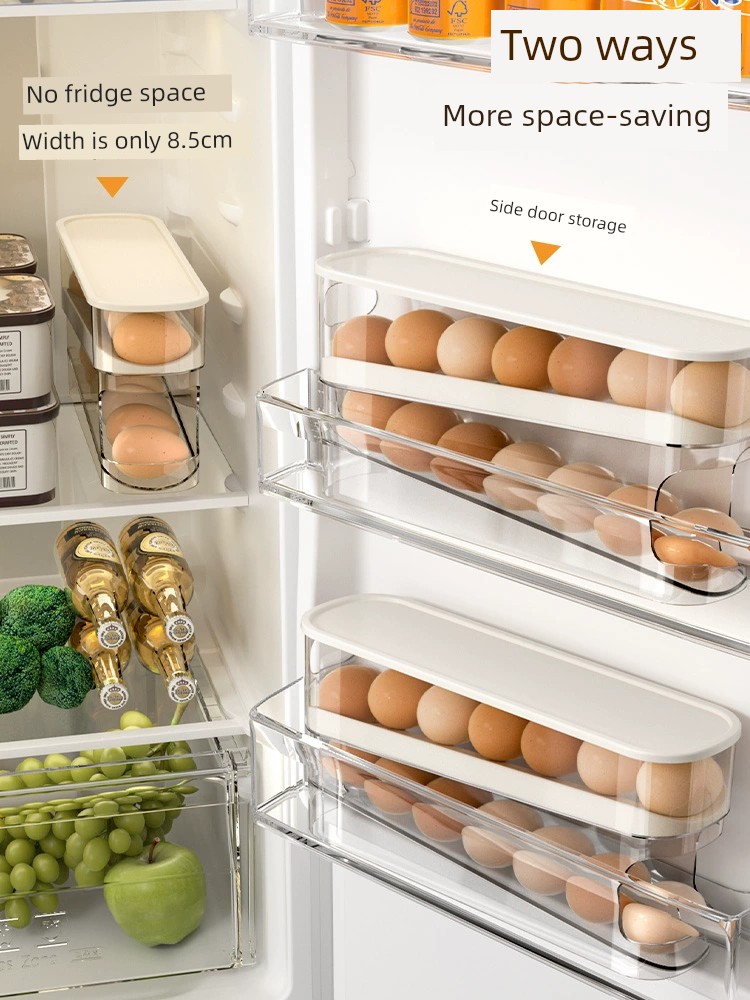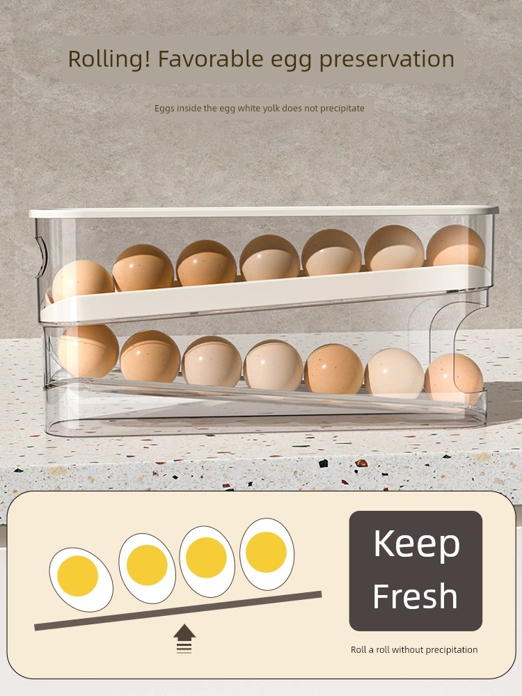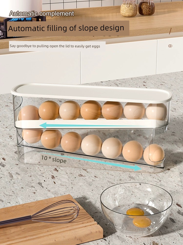 Контейнер для яиц с роликовым механизмом для холодильника, лоток для хранения яиц, овощерезка, пищевой продукт, отличный держатель для яиц