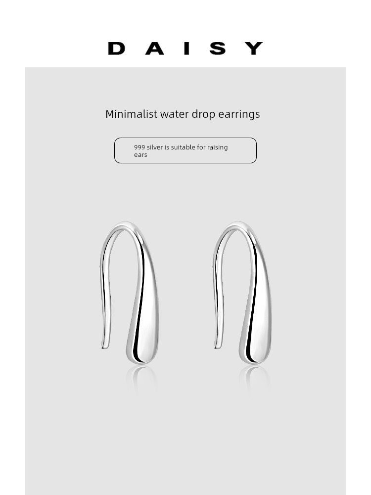 Женские серьги из стерлингового серебра S999, ухаживающие за ушами, не требующие снятия на ночь, в форме капель воды