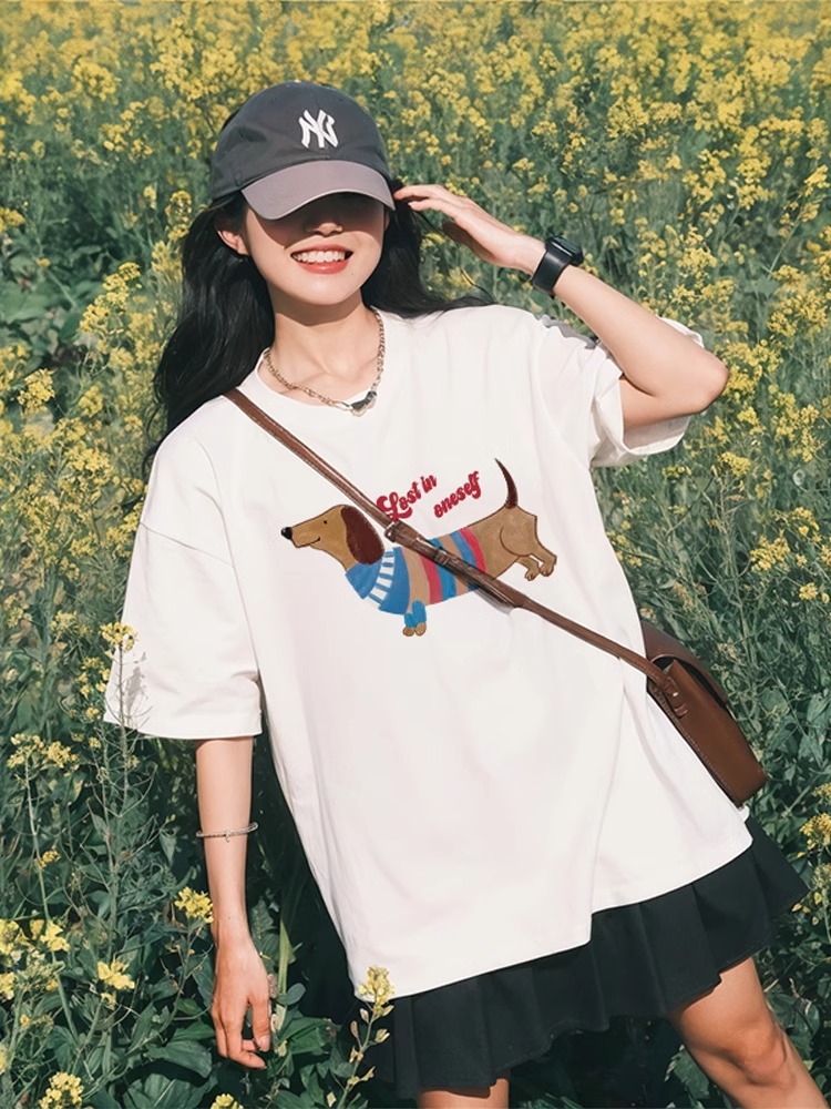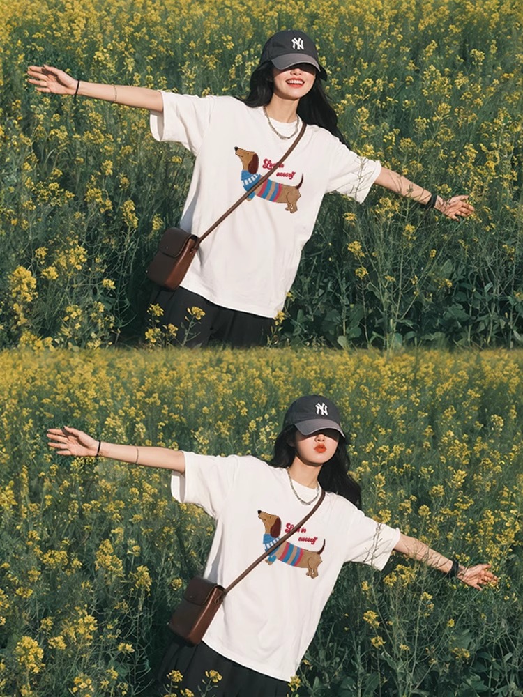 Футболка с короткими рукавами, женская, новинка 2025 года, бестселлер, лето, белая, чистая хлопок, свободная и милая, ins, топ с полурукавом, уникальный маленький