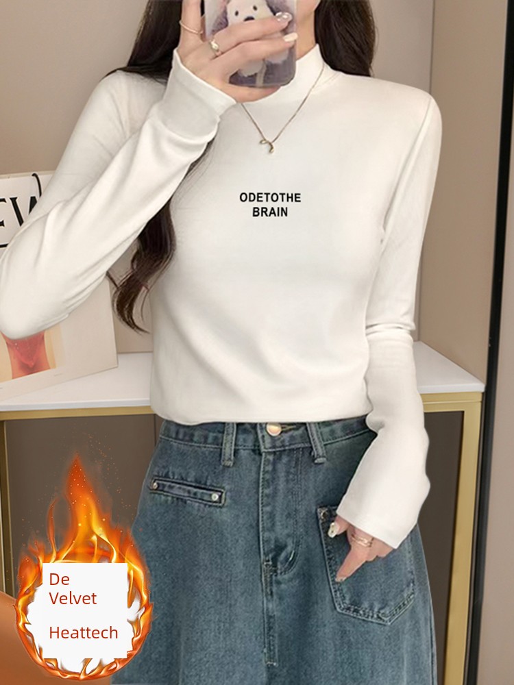 Футболка с длинным рукавом и полувысоким воротником на плечо для женщин, новинка 2025, утолщенная дрань, нижняя нижняя рубашка, модные, стройнящие, молодежные топ