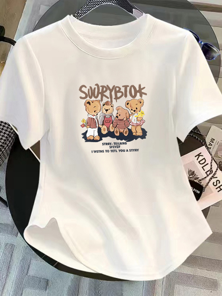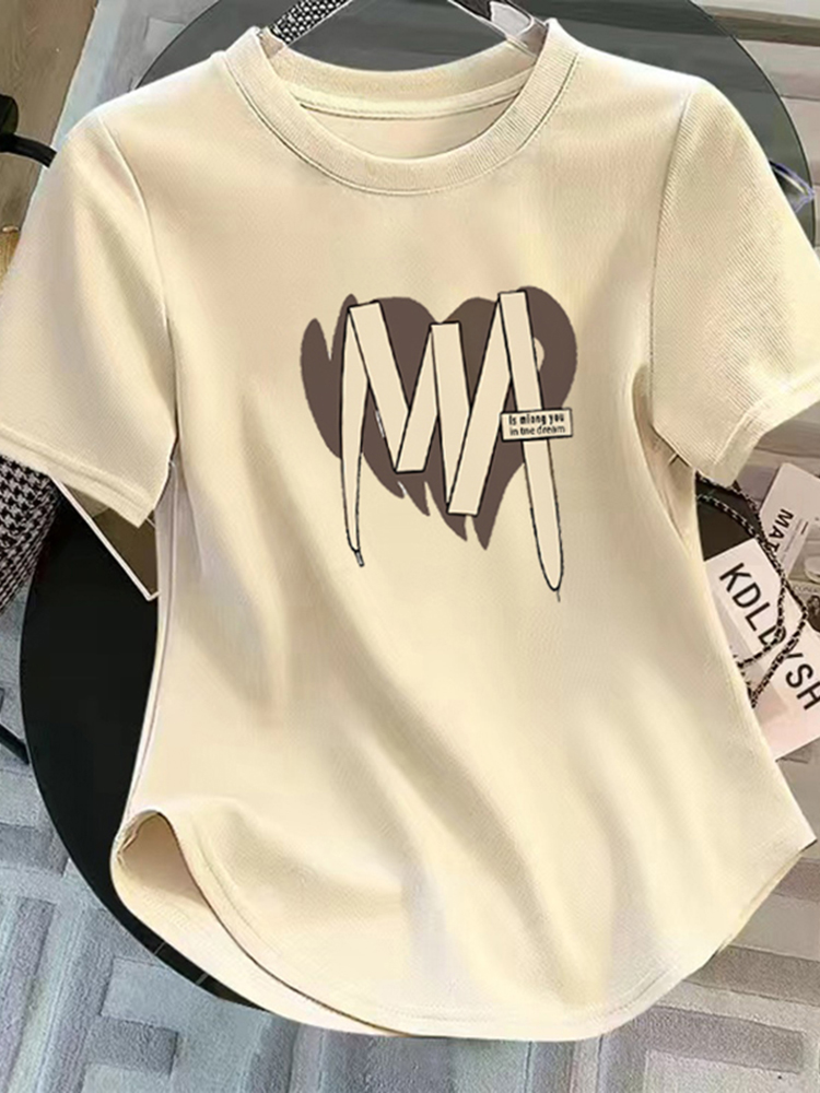 Футболка с коротким рукавом с открытыми плечами Женское новое поступление Лето Западный стиль Стройнящая нижняя одежда Чистый хлопок Изогнутый подол Стильный короткий топ