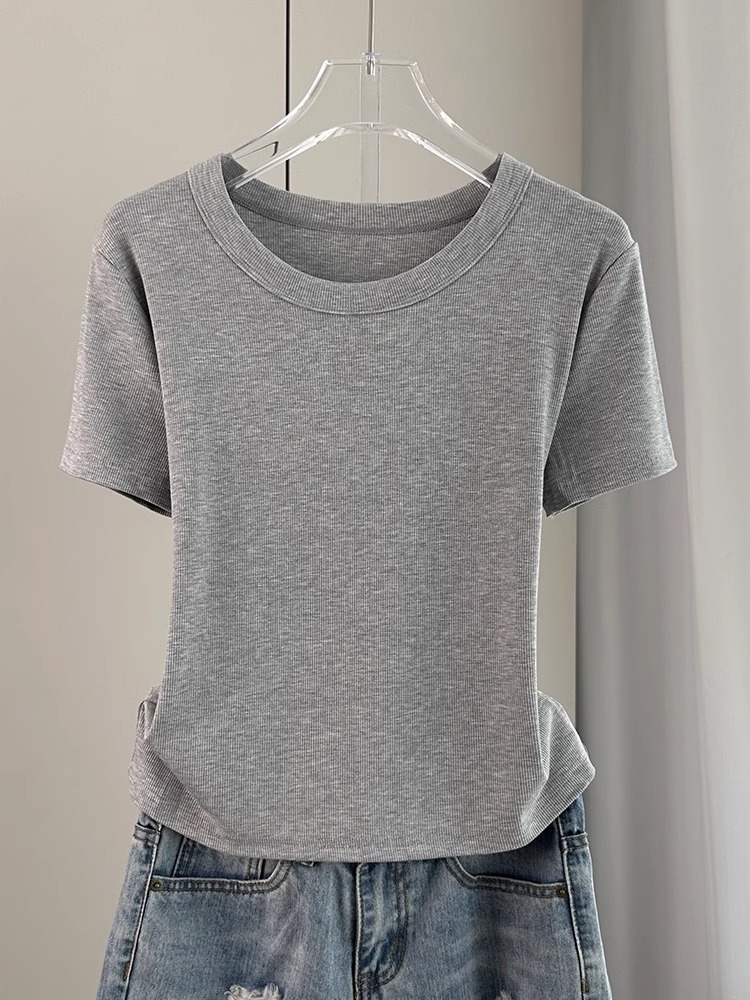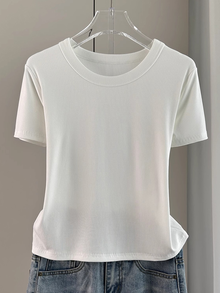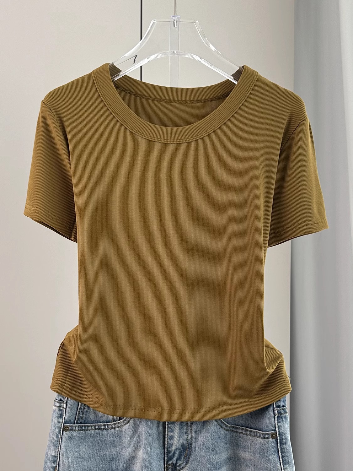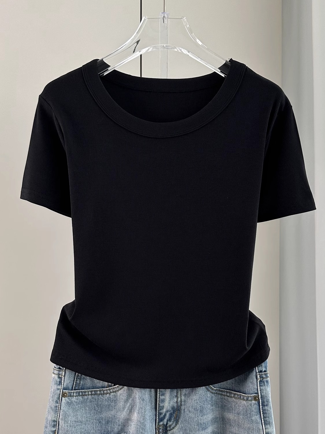 Женская футболка с коротким рукавом с открытыми плечами, летняя новинка 2025, свободная, легко сочетаемая, с круглым вырезом, ниточная, однотонная, нижняя рубашка, блузка