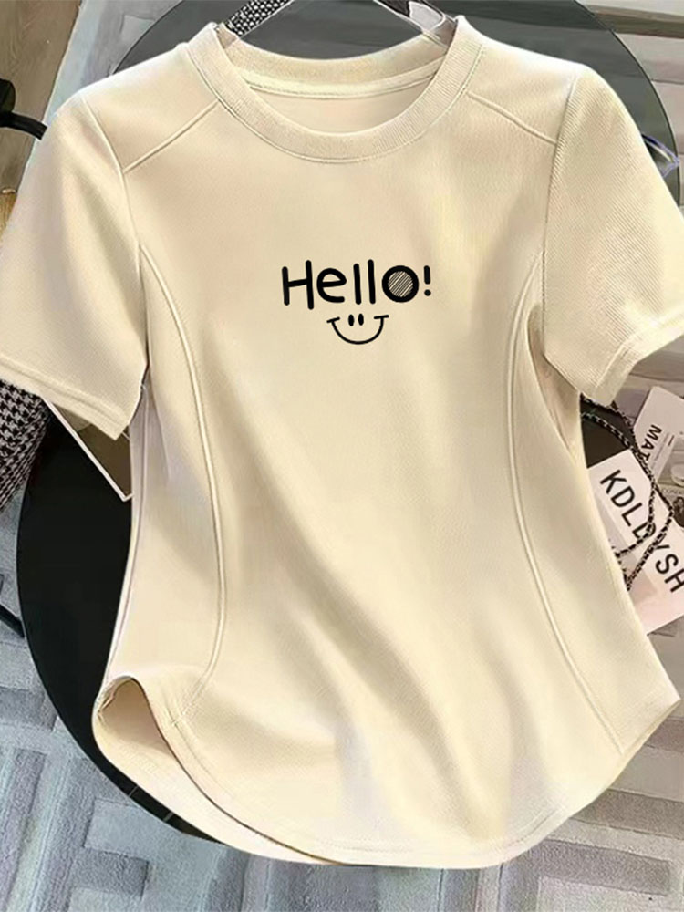 Плечевая футболка с коротким рукавом, женская летняя футболка из чистого хлопка, новинка, универсальная, приталенная, сужающая силуэт, с рыбьими костями, с круглым вырезом, короткие топы, модные