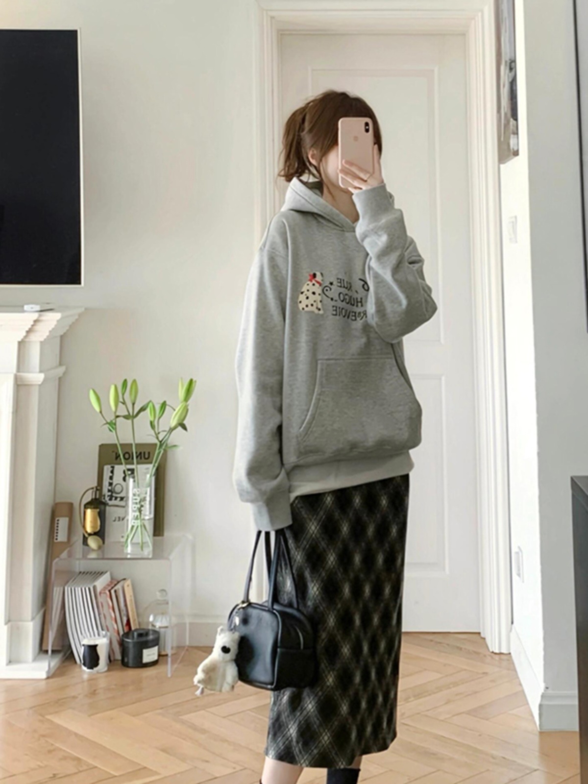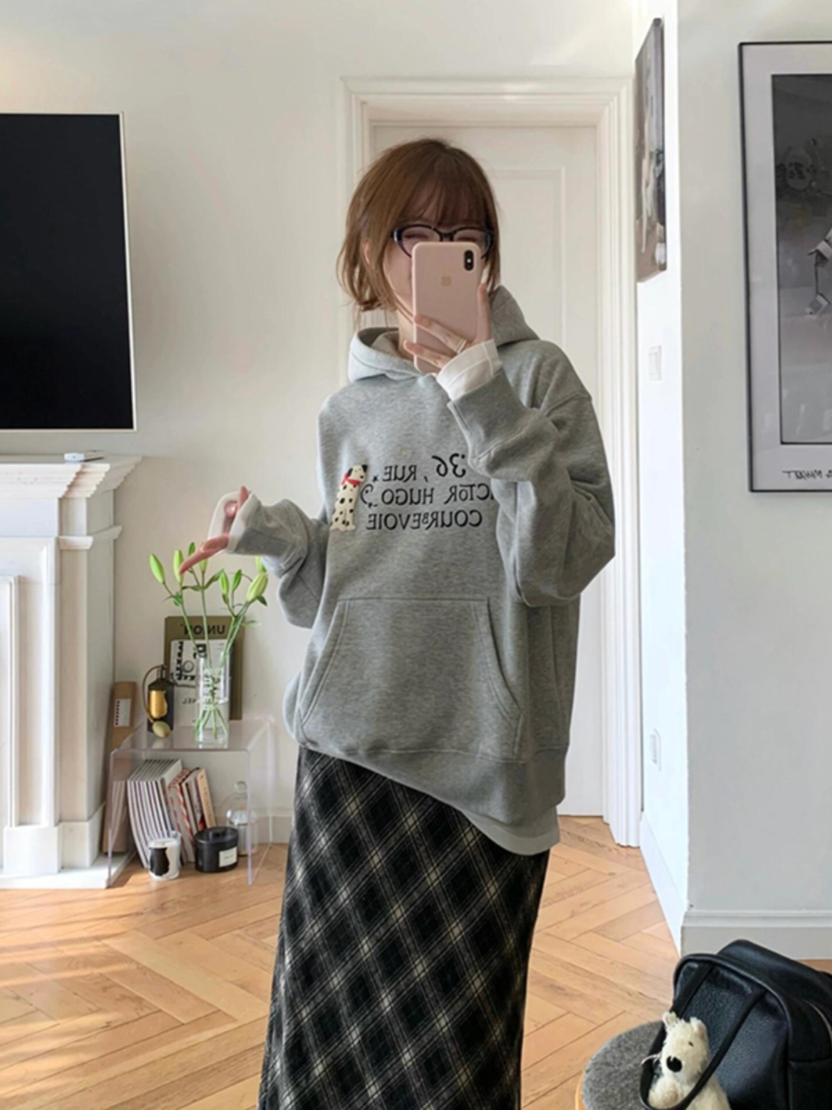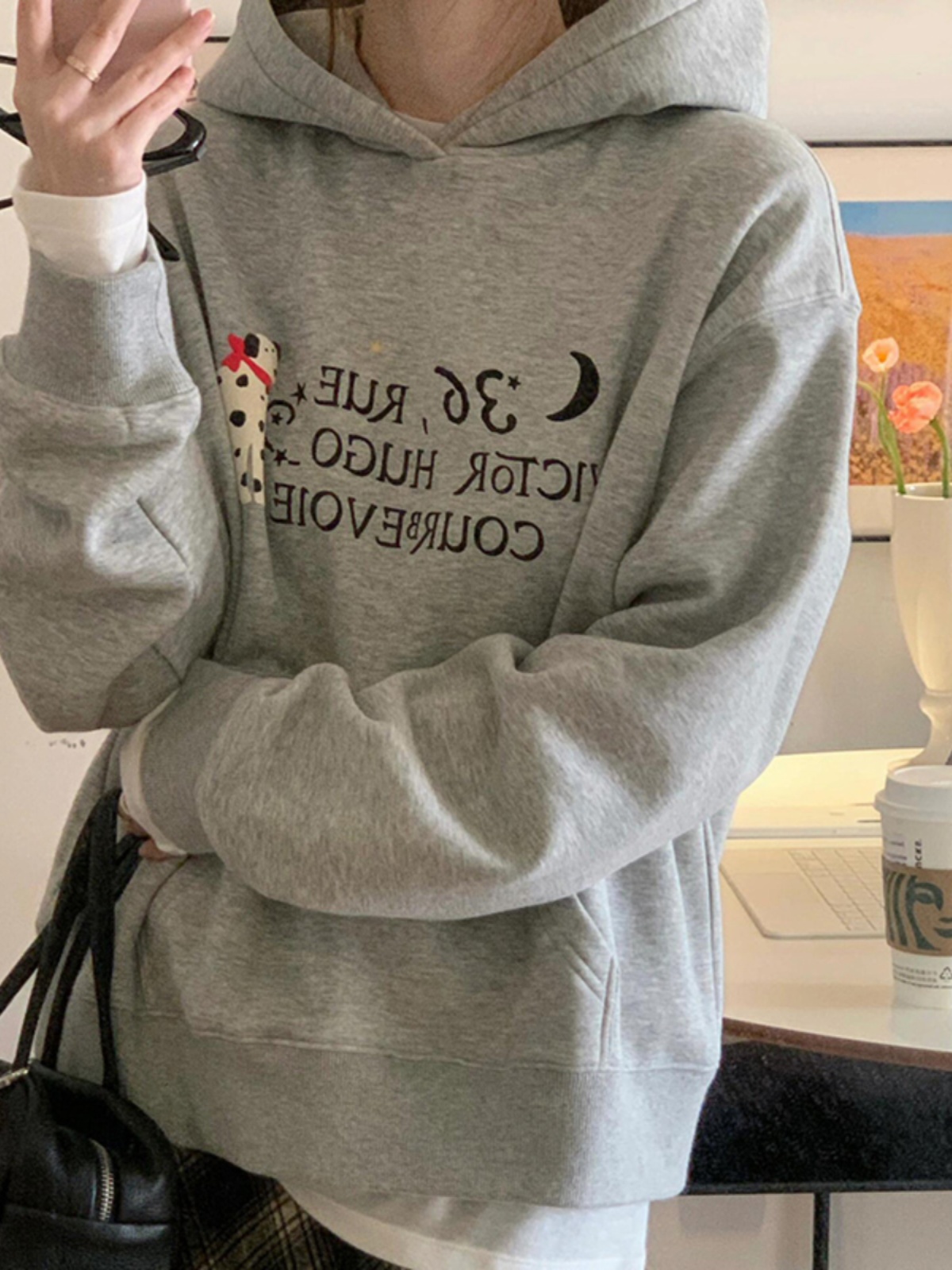 Женская толстовка с капюшоном из бархата «Серебряная лиса» с начесом, новинка весны-осени 2025, утолщенная, стильная, нишевая, свободная, с капюшоном