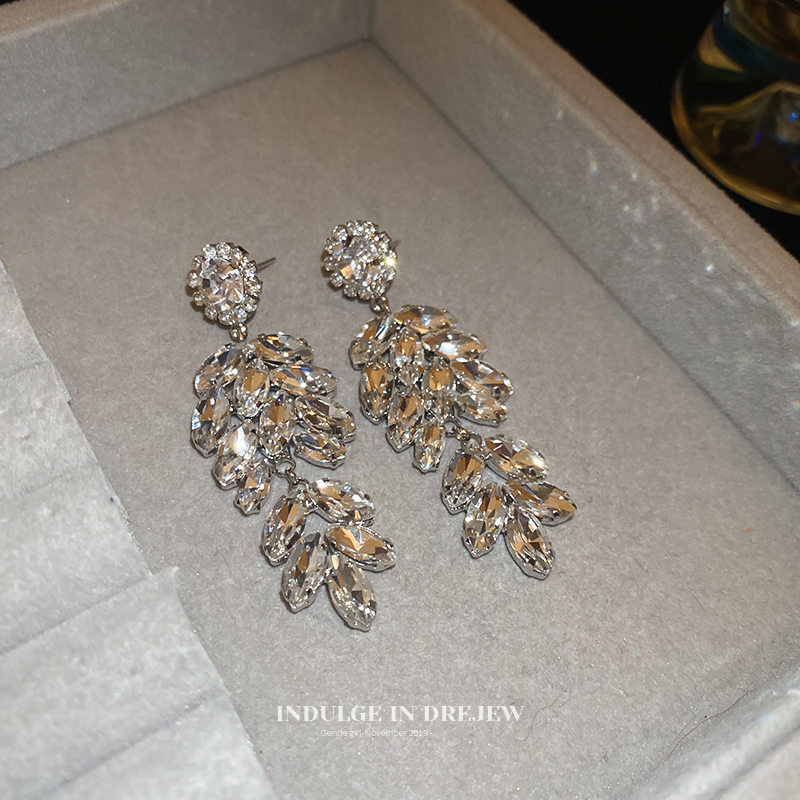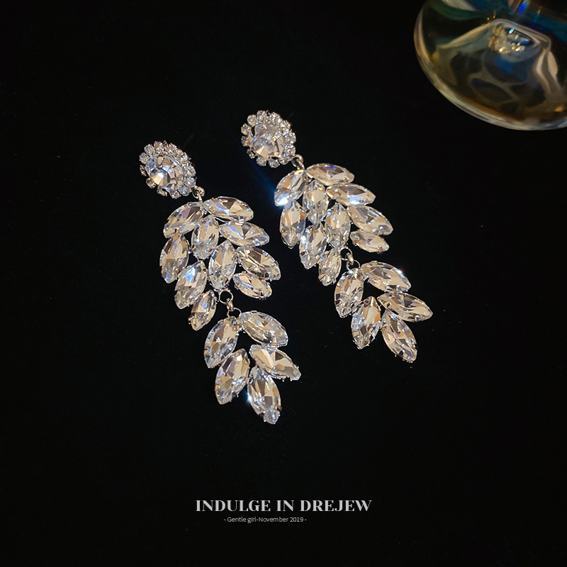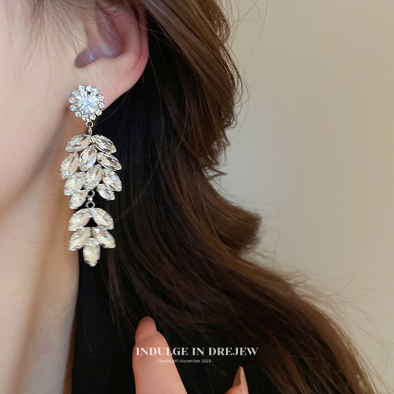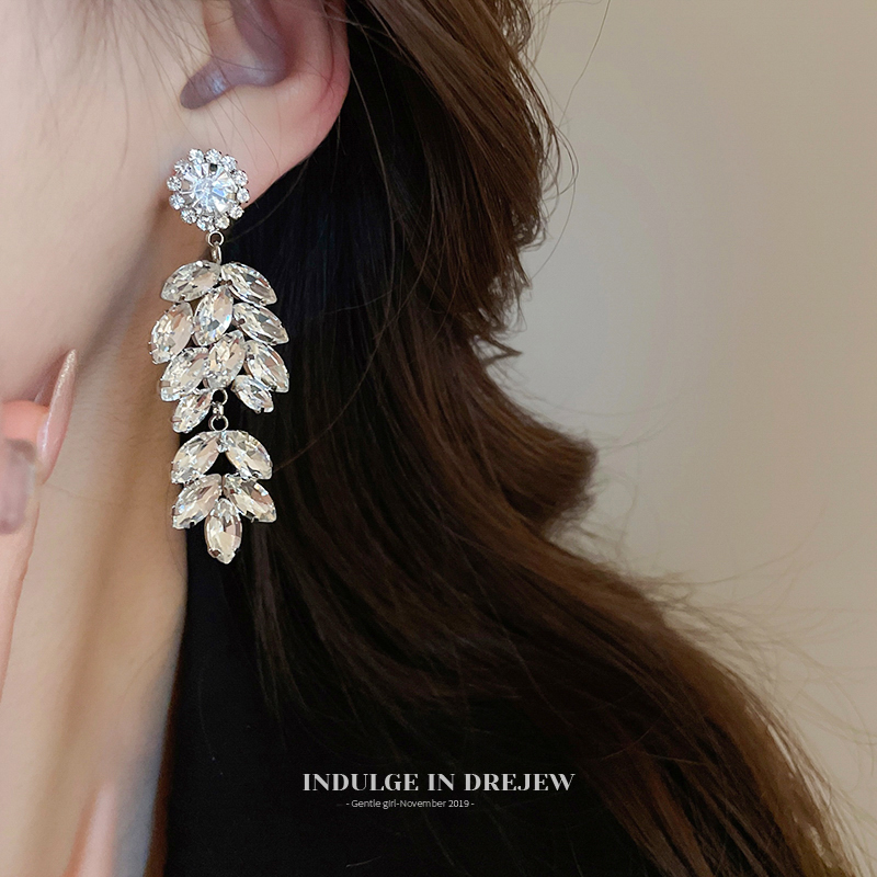 Серебряные блестящие серьги-подвески с пшеничным колоском Легкая роскошь Высококлассные серьги с темпераментом Свадебное платье Невесты Официальное платье Изысканные серьги Женские