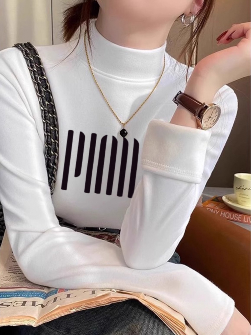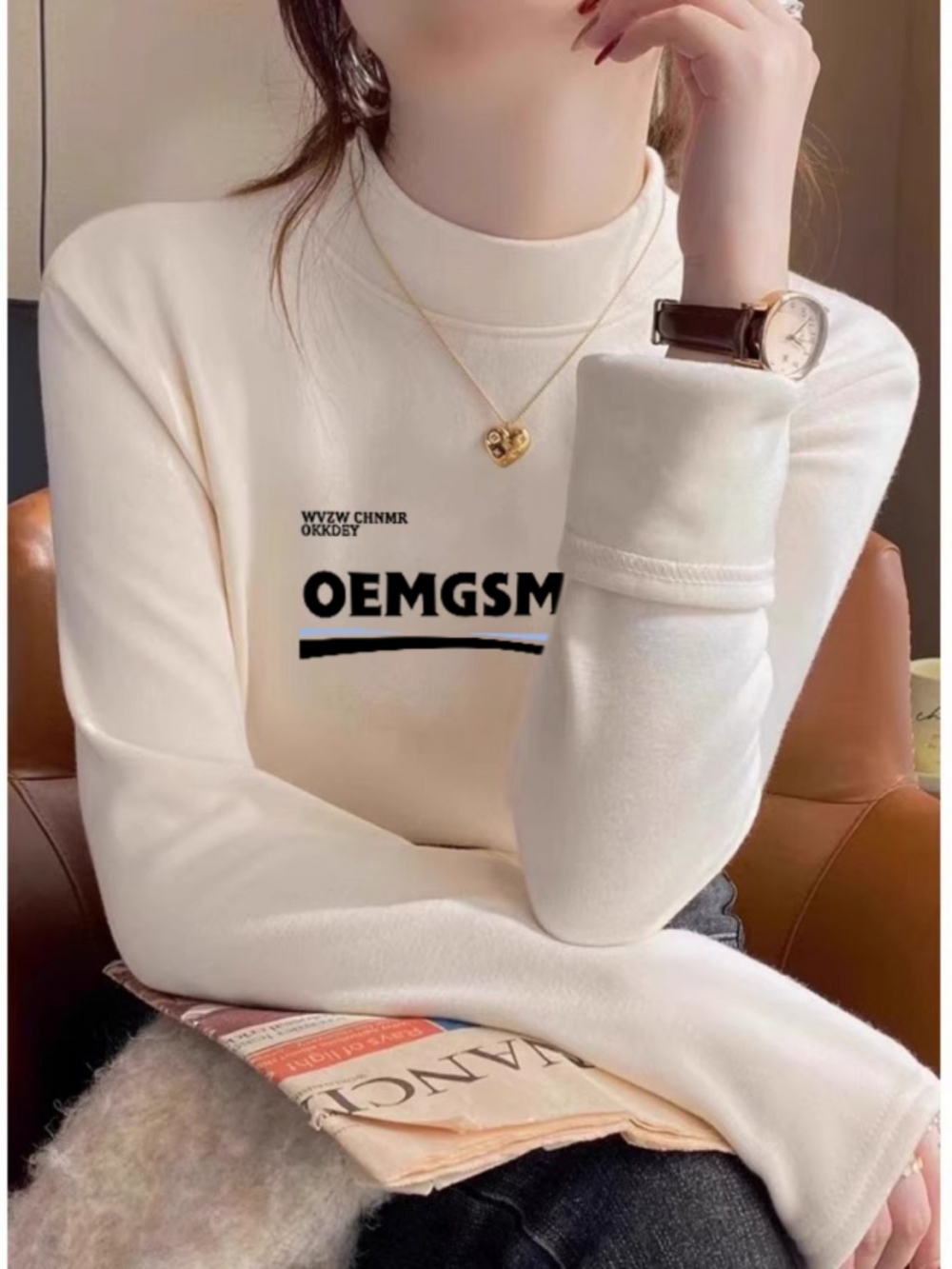 Маленькая рубашка с воротником-стойкой, женская, осенняя и зимняя, кремовая, с длинным рукавом, футболка из дралона, платье-повязка, полугольф, облегающий топ