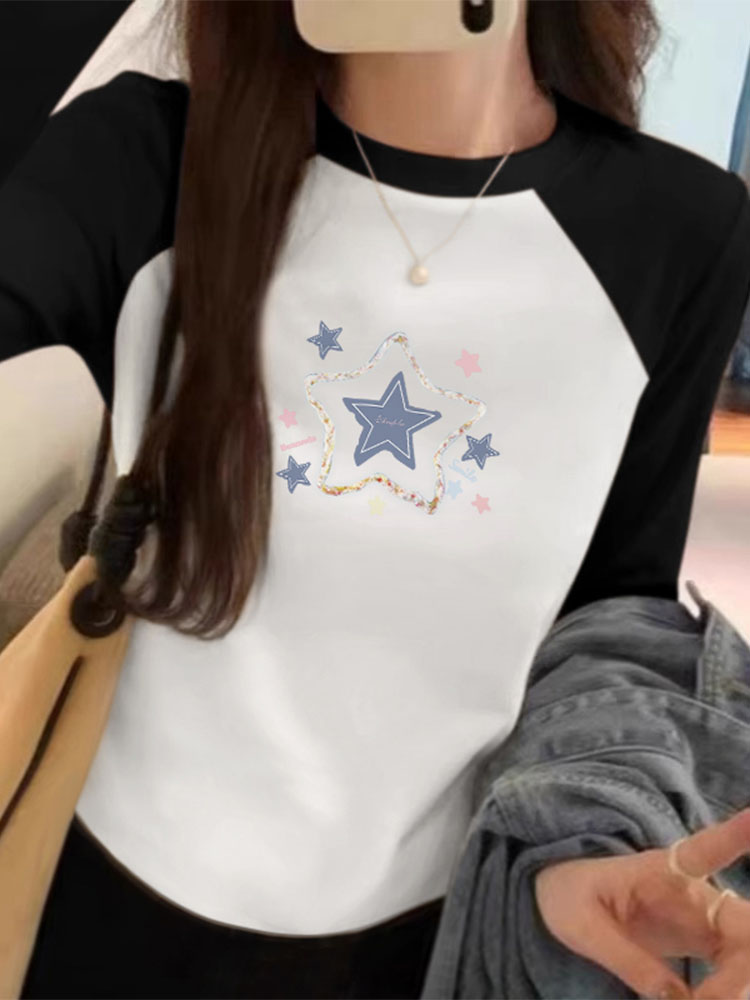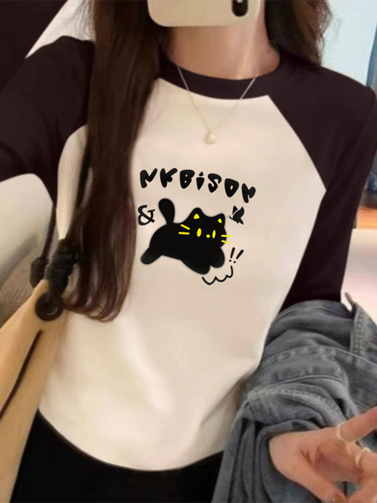Весна и осень, новинка, футболка с рукавами реглан, в тон, женская повседневная рубашка, узкая, молодежная, модная, стильный топ