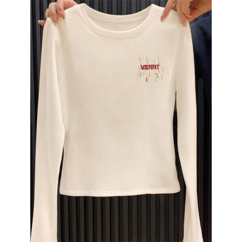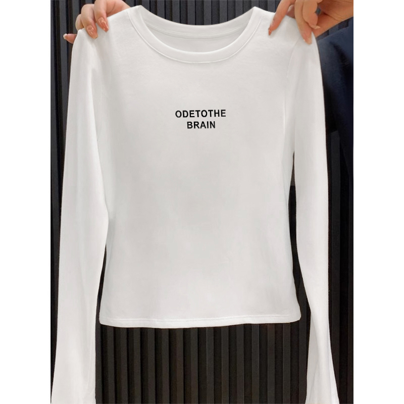 Весенне-осенняя белая нижняя рубашка с спущенными плечами, женская новая поступление, приталенный топ с круглым вырезом из чистого хлопка с длинным рукавом, короткий топ в западном стиле