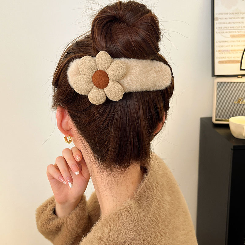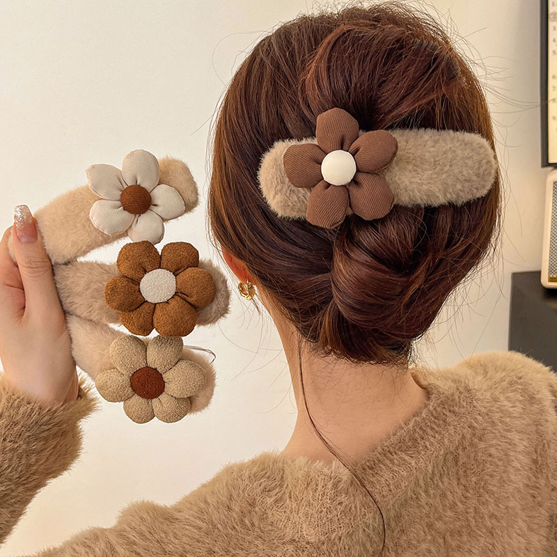 Заколка-утка "Набитый цветок" большого размера, осенние и зимние заколки, женские, для задней части головы, для тонких волос, для умывания, легко сочетается, аксессуар для волос