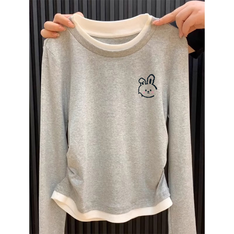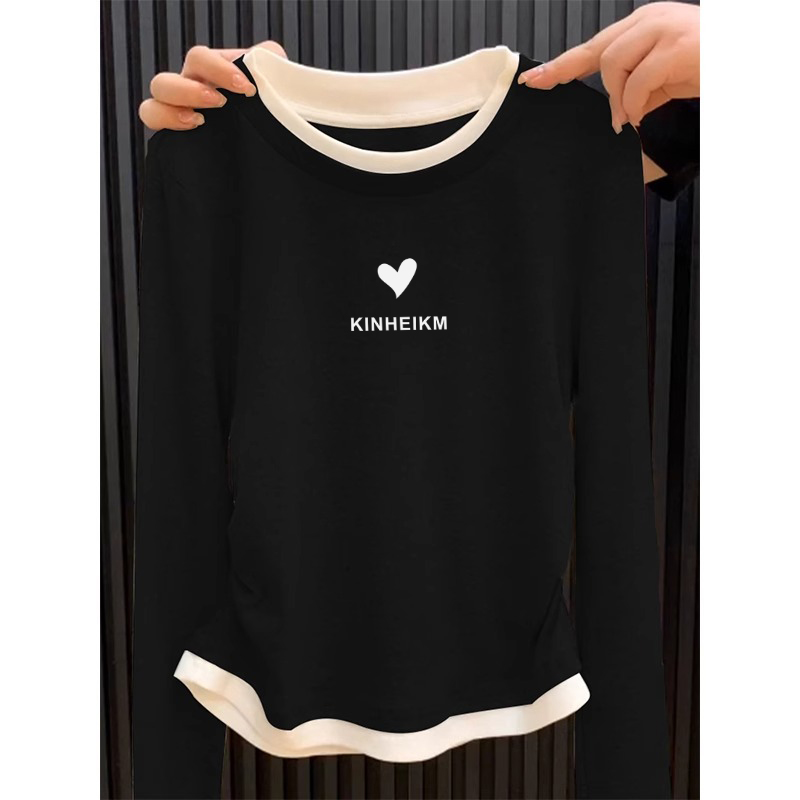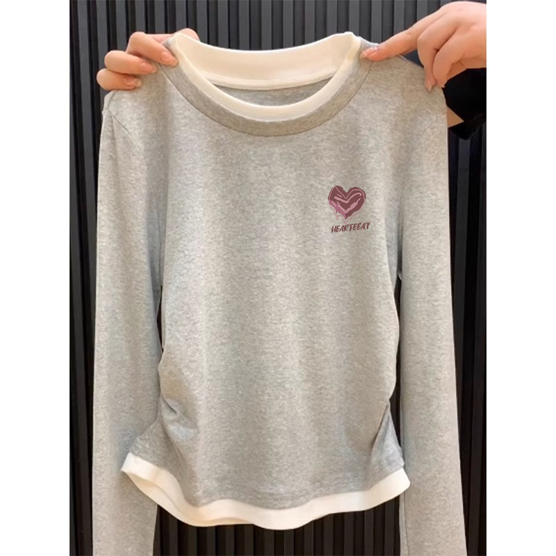 Стильная футболка с длинными рукавами в контрастных цветах, имитация двух предметов, женская, осень/зима, приталенная, с рюшами, утепленная бархатом, нижний слой
