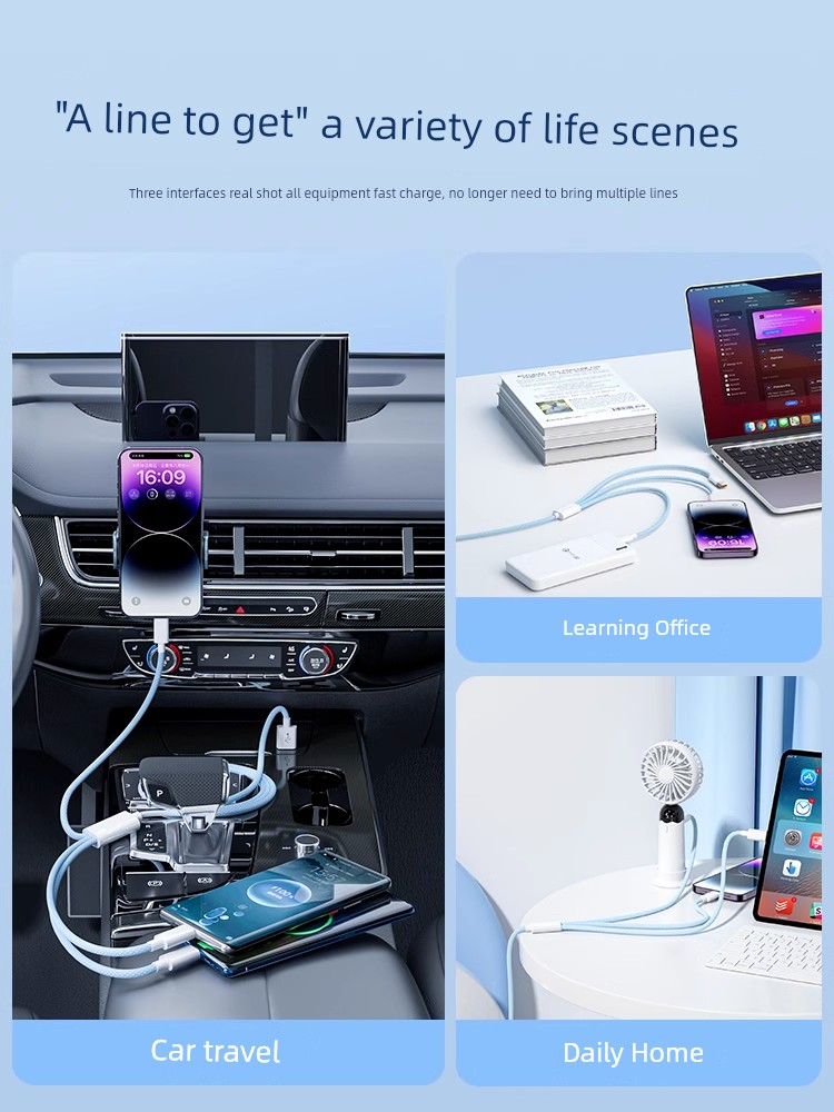 Подходит для кабеля данных 100 Вт, три в одном, быстрая зарядка для Apple Huawei Android с разъемом, набор один на три, зарядный кабель для мобильного телефона, трехголовый многофункциональный