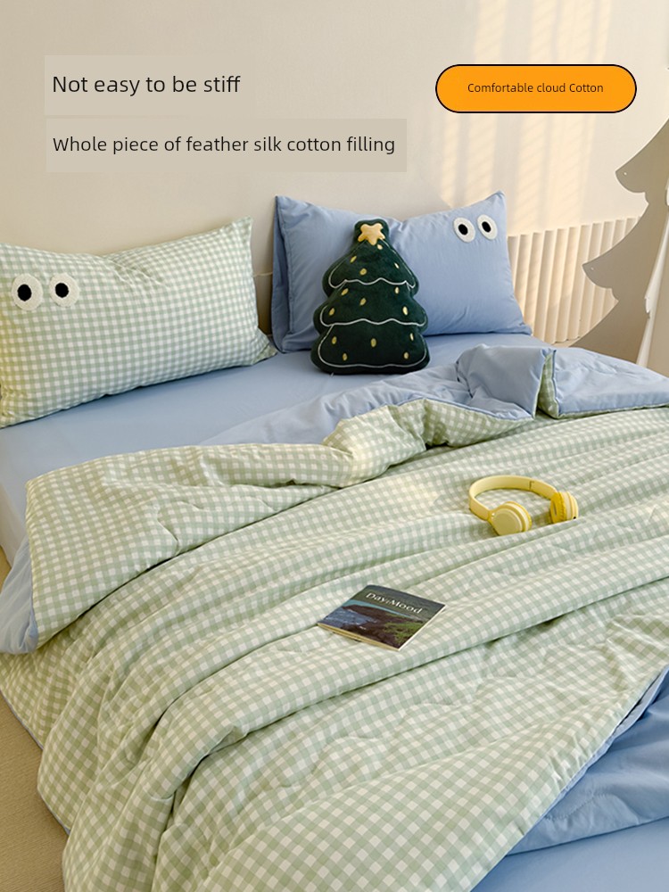 Летнее одеяло с кондиционером, летнее одеяло, комплект из четырех предметов, общежитие, студенты, однотонное тонкое одеяло, вставка для одеяла, детское летнее одеяло, новинка 2025 года