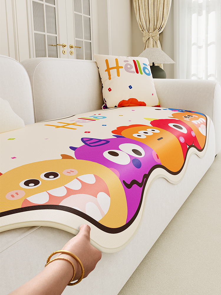 Летняя наволочка для дивана из ледяного шелка, асимметричная нескользящая подушка, мультяшная, милая, прямая подушка, всесезонный универсальный чехол, ткань