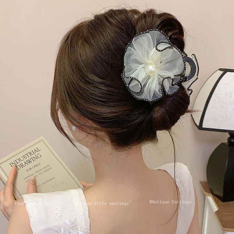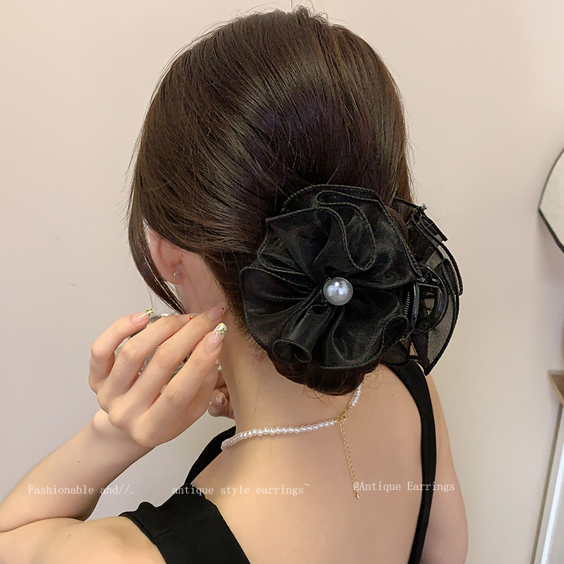 Заколка для волос "Супер фея" из сетки с жемчужным цветком для женщин, заколка для прически сзади, распущенная заколка-краб, объемные заколки для волос, головной убор