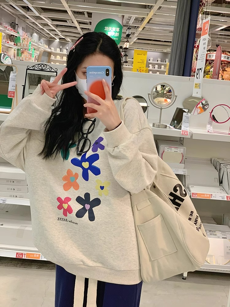 Очень классная толстовка цвета овсянки с круглым вырезом, женская, весна-осень 2025, бестселлер, оверсайз в K-стиле, нишевый топ