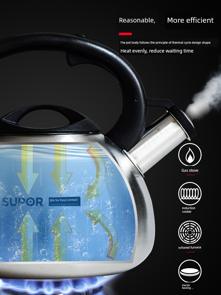 Supor 304 Stainless Steel Kettle Gas Gas Induction Cooker Teapot Automatic Sound Kettle Whistle