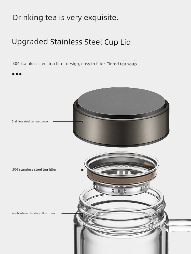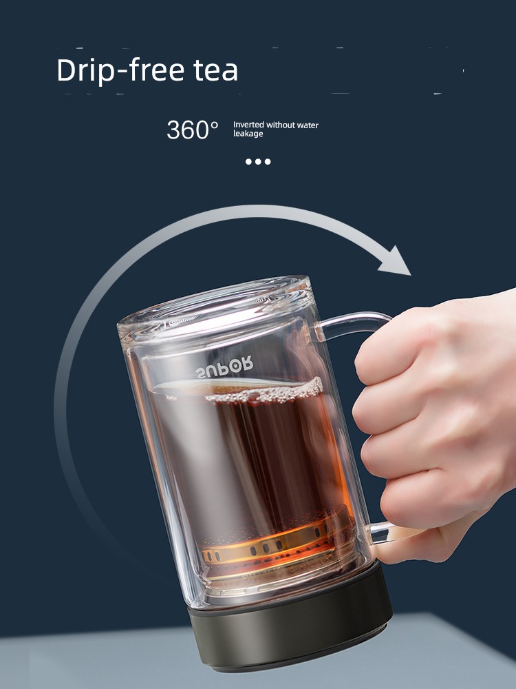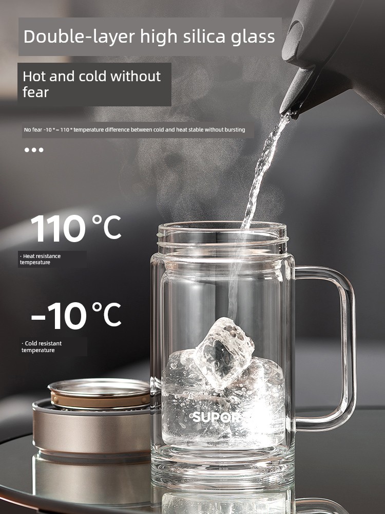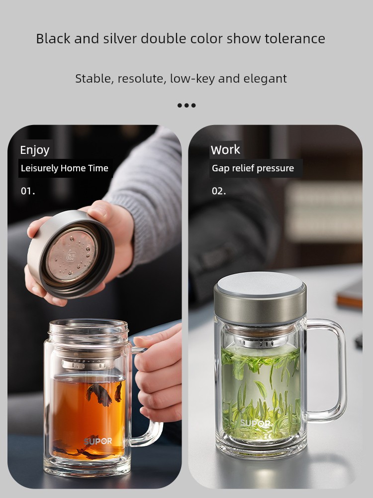 Supor Двойная стеклянная кружка Водяная кружка Мужская офисная чашка для чая с подогревом, взрывозащищенная, большой емкости, с ручкой и крышкой