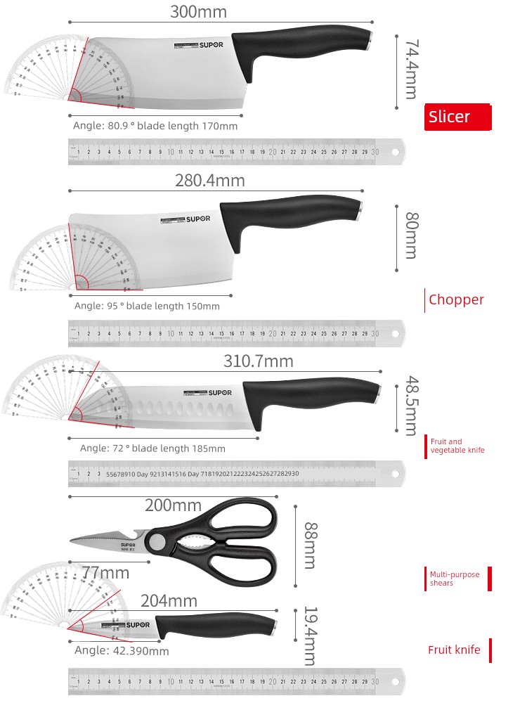Supor Набор кухонных ножей для дома, набор лопаток из нержавеющей стали, разделочная доска, острый кухонный полный набор, комбинация ножа и лопатки