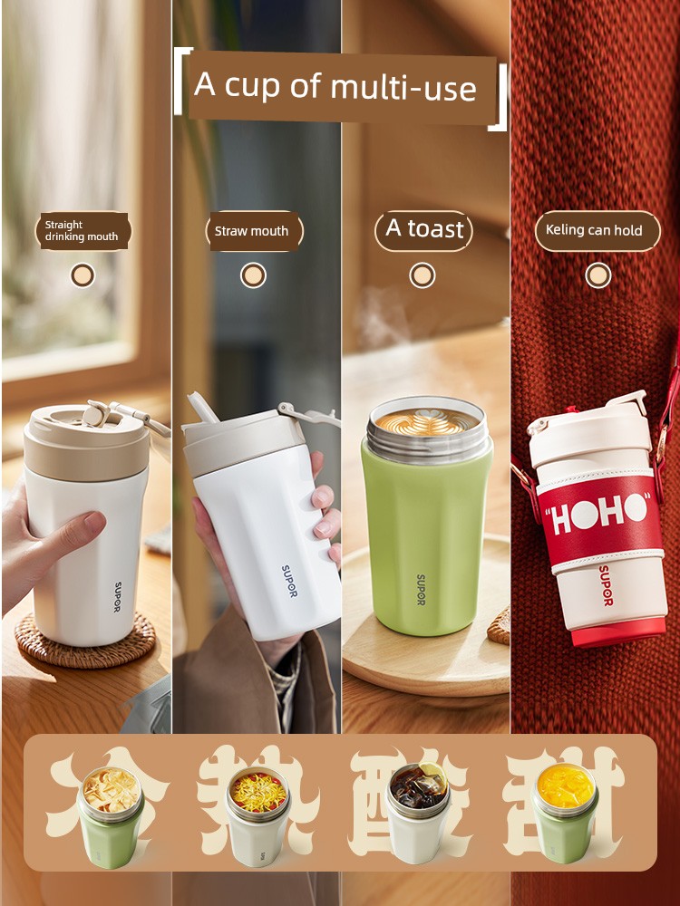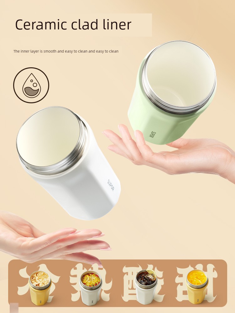 Supor Вакуумная кружка с соломинкой и керамической внутренней колбой, двойного назначения