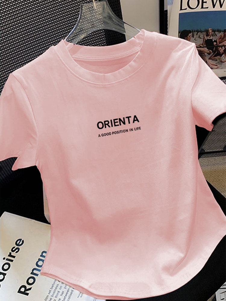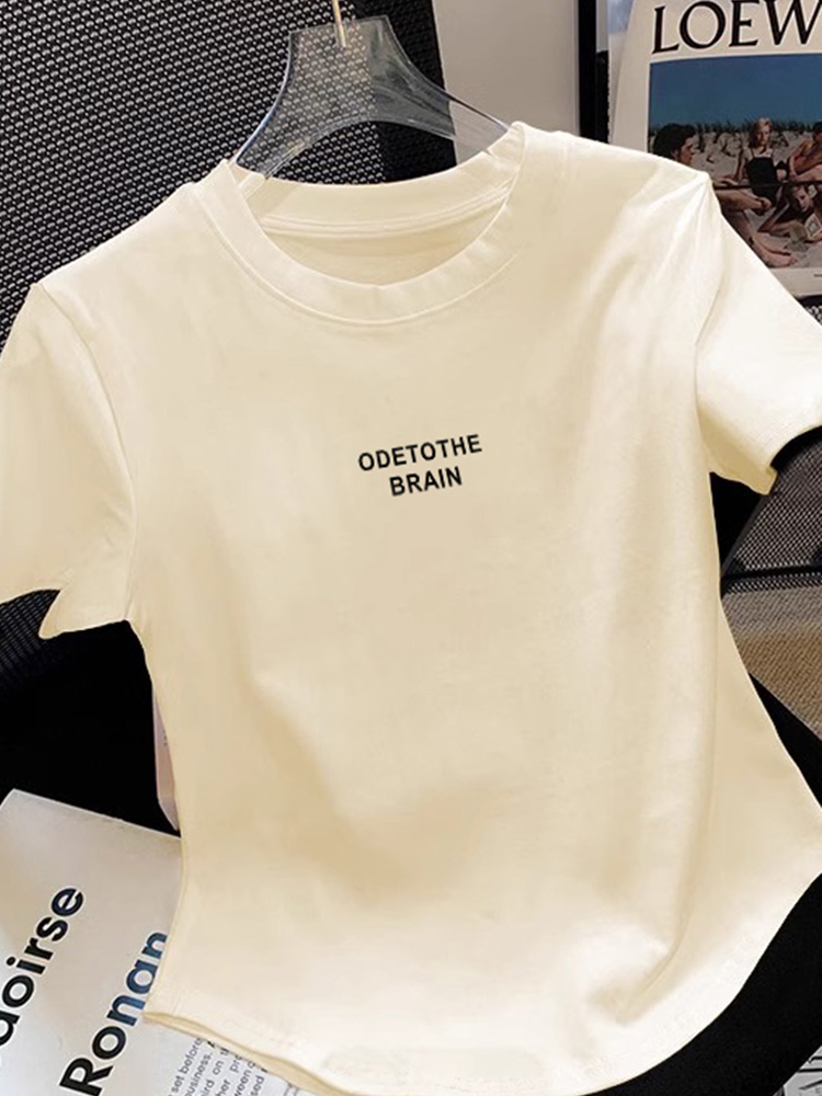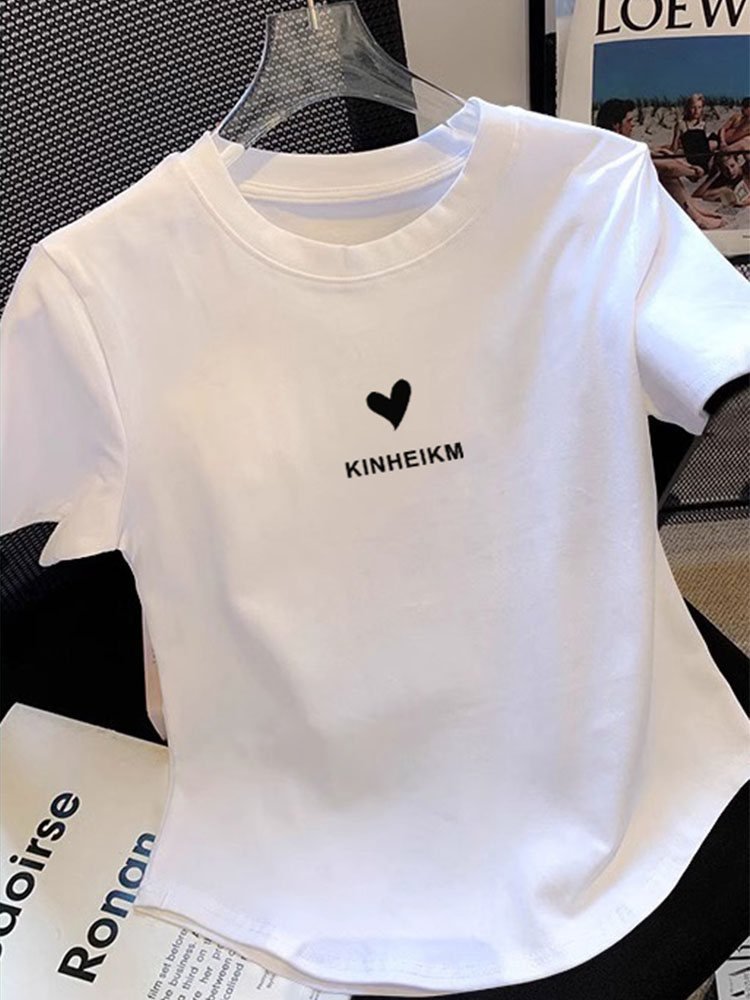Женская белая футболка «Тринадцать рядов» с коротким рукавом, летняя новинка 2025 года, полурукав, приталенный силуэт, изогнутый подол, короткие топы