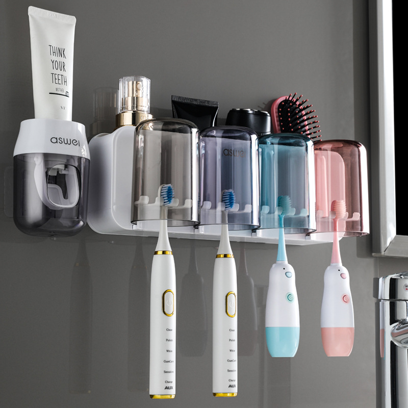 Держатель для Зубных щеток Стакан для Полоскания Полости Рта Настенный Ванная Комната Без Отверстий Настенный Набор для Чистки Зубов Электрическими Зубными Щетками