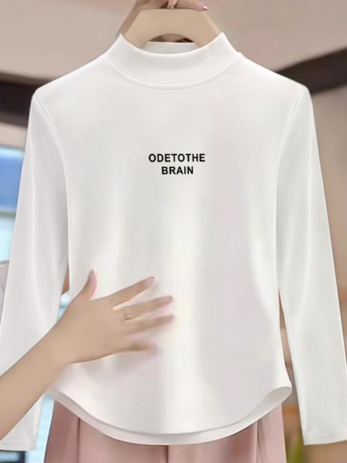 Женская нижняя рубашка, осень и зима, модная, с полувысоким воротником, новинка 2025, футболка из дралона с длинными рукавами, с изгибом подола